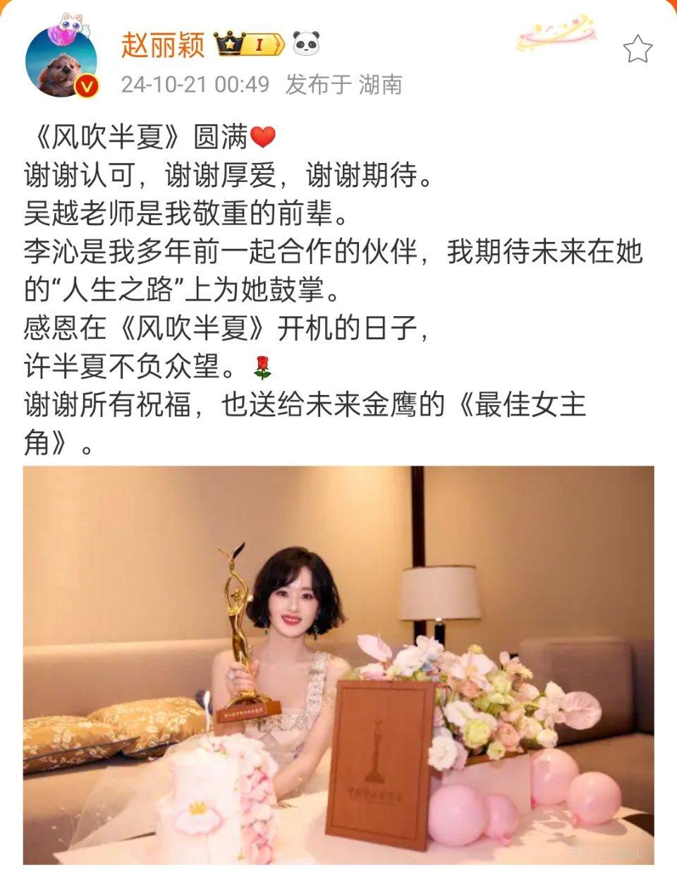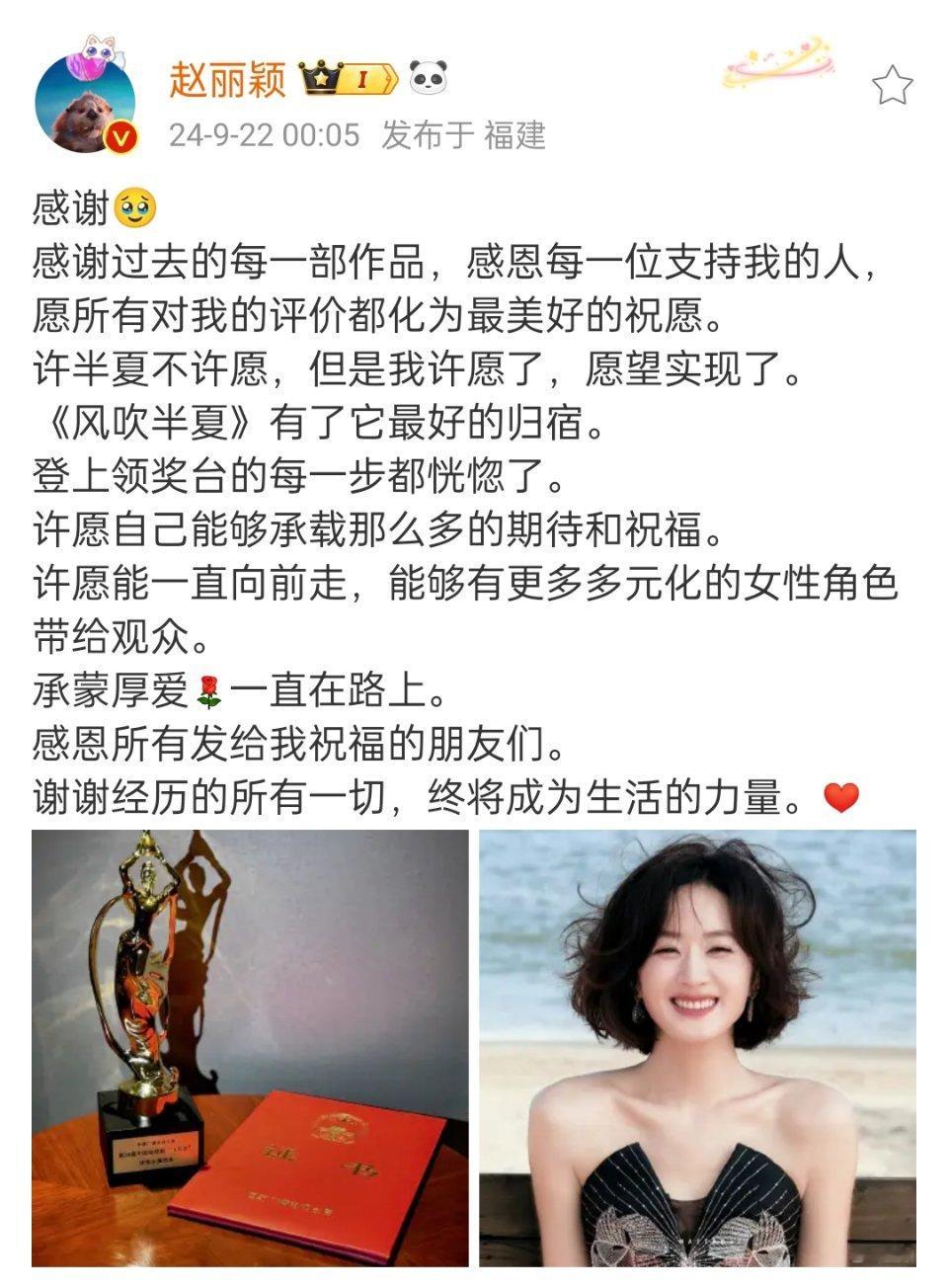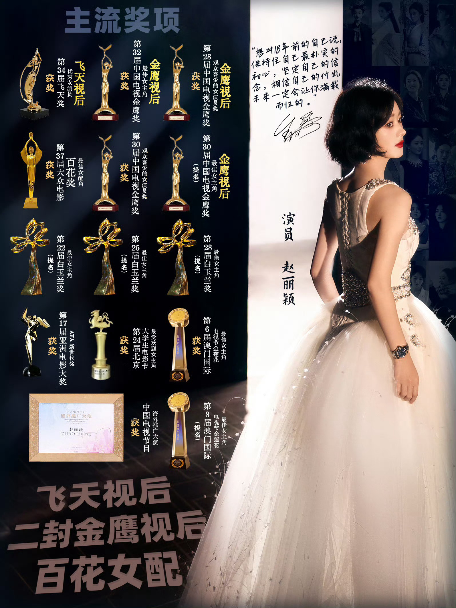 赵丽颖3个月拿下3座大奖,百花女配、飞天视后、金鹰视后,最新奖项实际图好亮眼,花粉天堂!