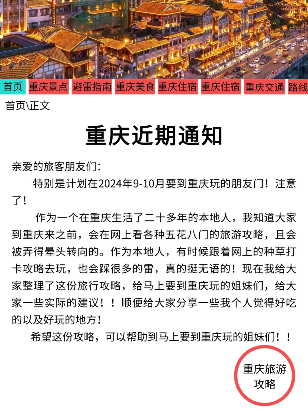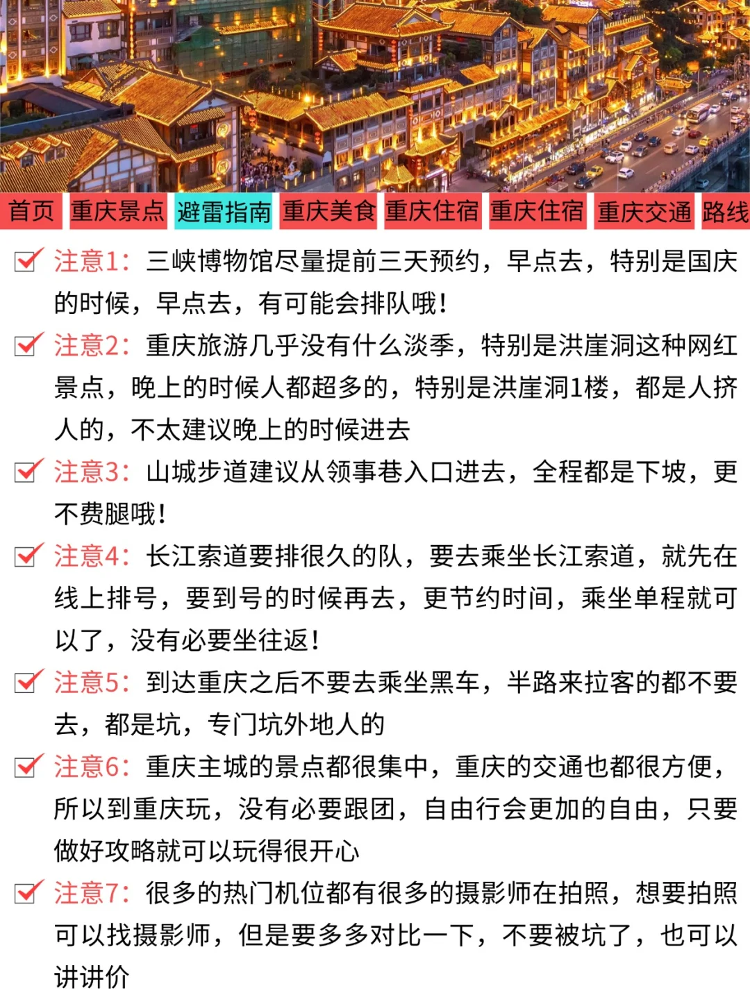重庆开始降温,这时候是来重庆玩的很佳的时期,但是如果不做好攻略,真的巨踩雷!还没有做攻略,或者是攻略还没有做的很完全的姐妹,记得看!尽量避免踩坑吧!