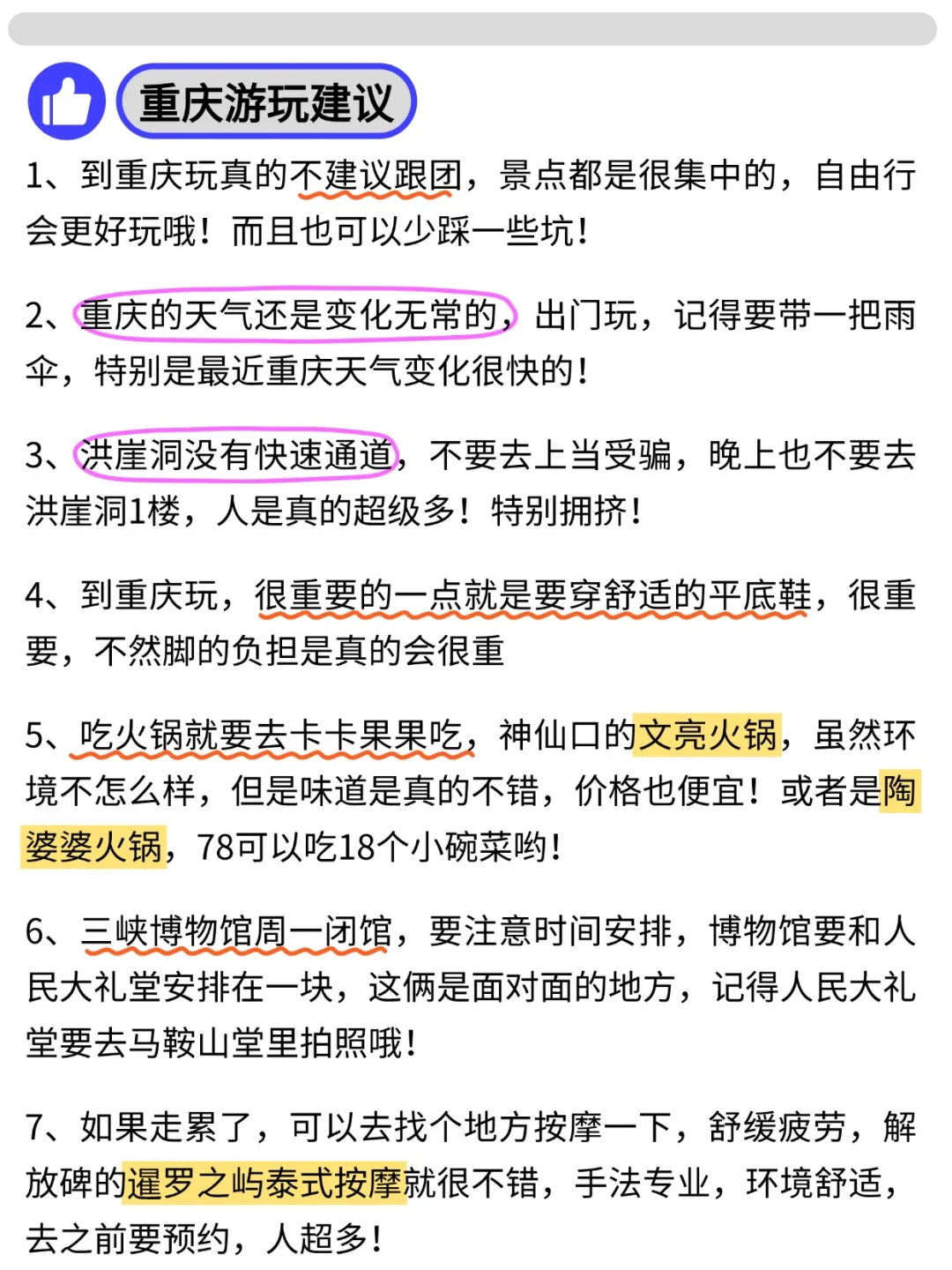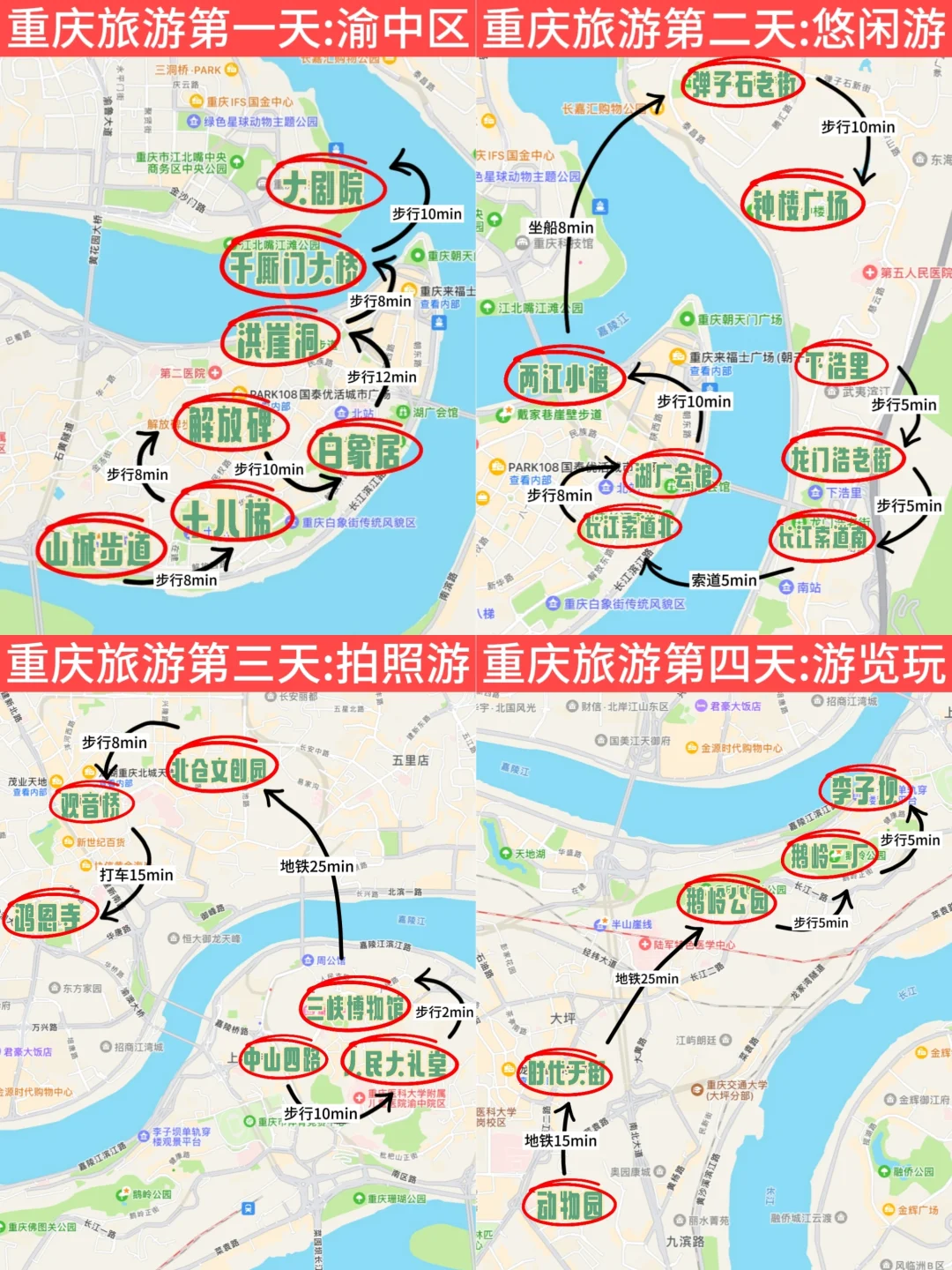 还不知道怎么做重庆游玩攻略的宝子,可以看这篇,给大家整理了四日游,还有重庆交通+住宿+避坑+景点地图分布
