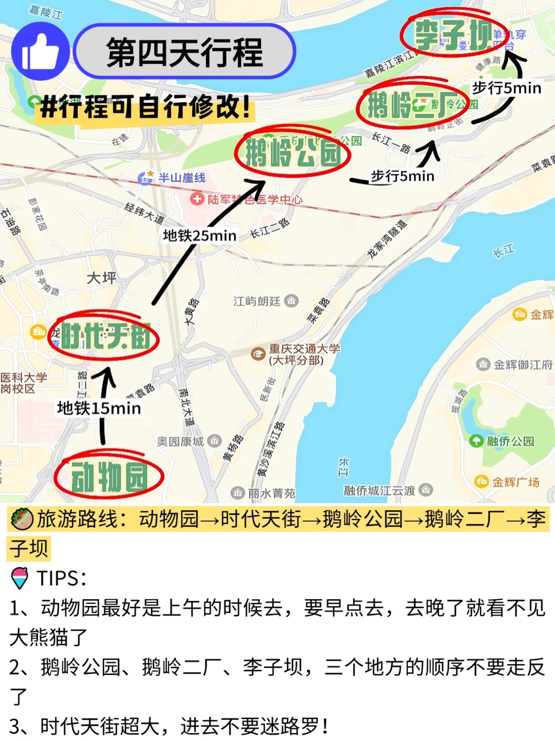 4⃣️动物园→时代天街→鹅岭公园→鹅岭二厂→李子坝