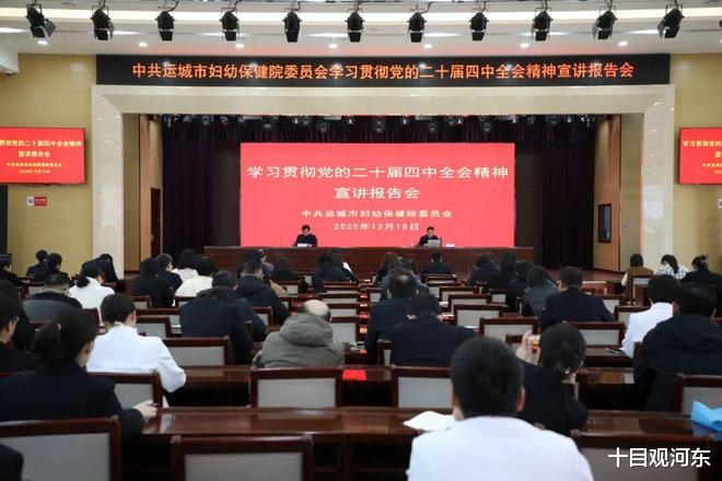 12月15日下午,运城市妇幼保健院举办学习贯彻党的二十届四中全会精神宣讲报告会。市直工委副书记、二级调研员刘兆军同志作宣讲报告。院党委书记聂晓峰主持会议。院班子成员、中层以上干部、正副护士长、全体党员和积极分子等共计100余人参加会议。