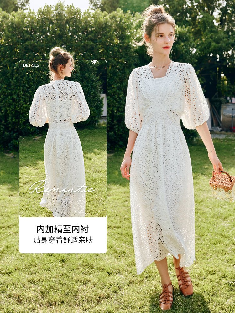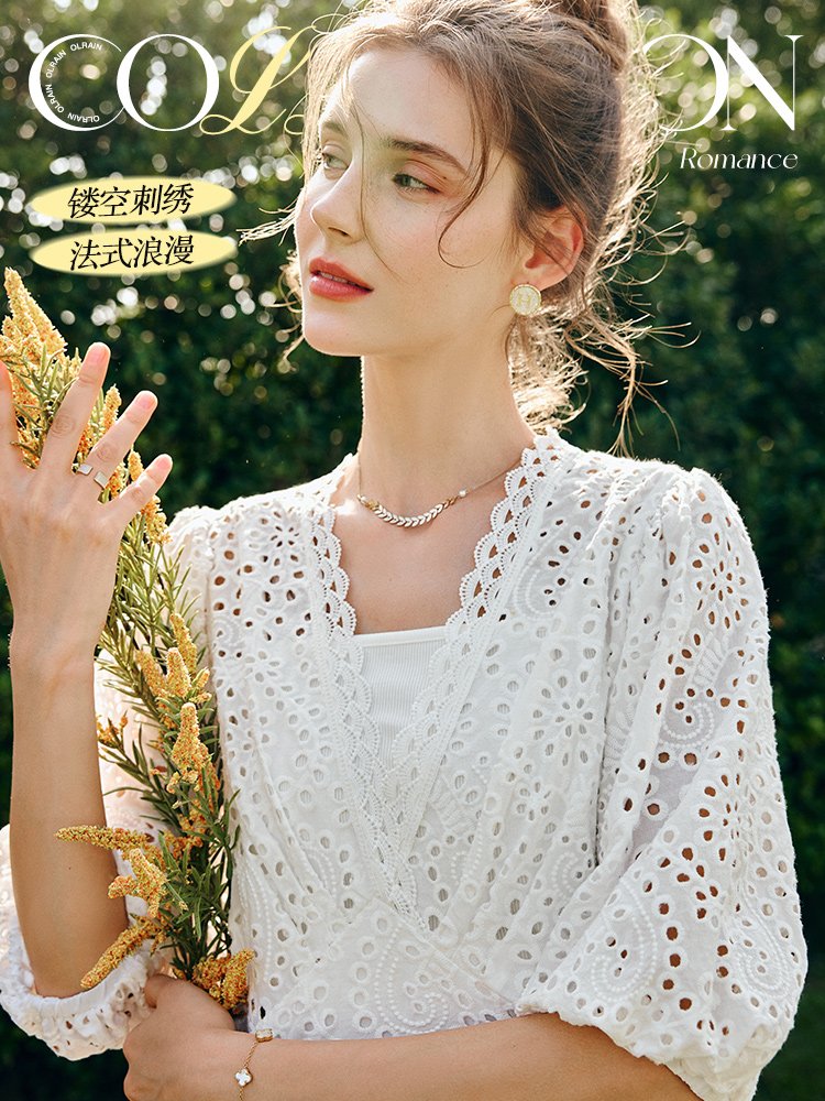 精美镂空刺绣,给予身体足够的呼吸空间;兼顾了法式浪漫,与灵动清新的少女感;高收腰X裙型,包容性好,提升臀腰比例;穿着没有半点束缚,保持美丽也能轻松自由