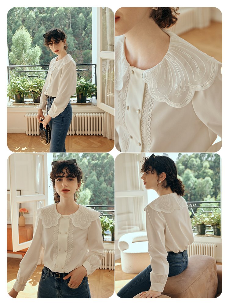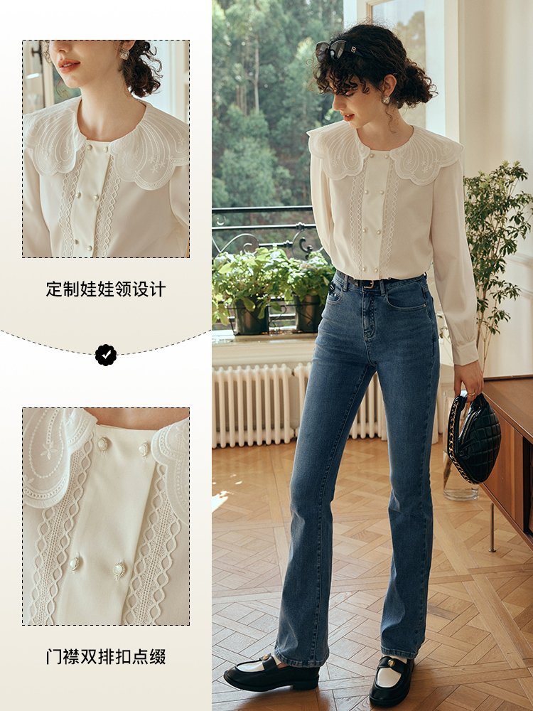 少女灵动感!定制蕾丝娃娃领雪纺衫