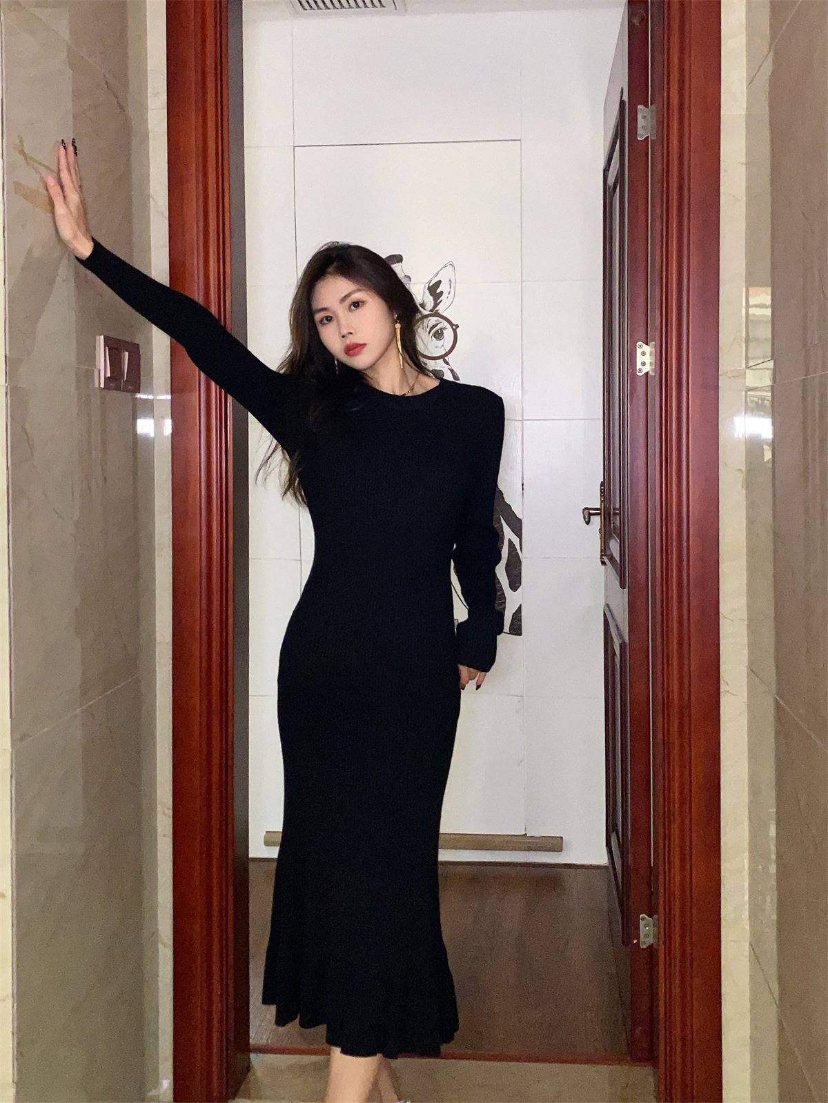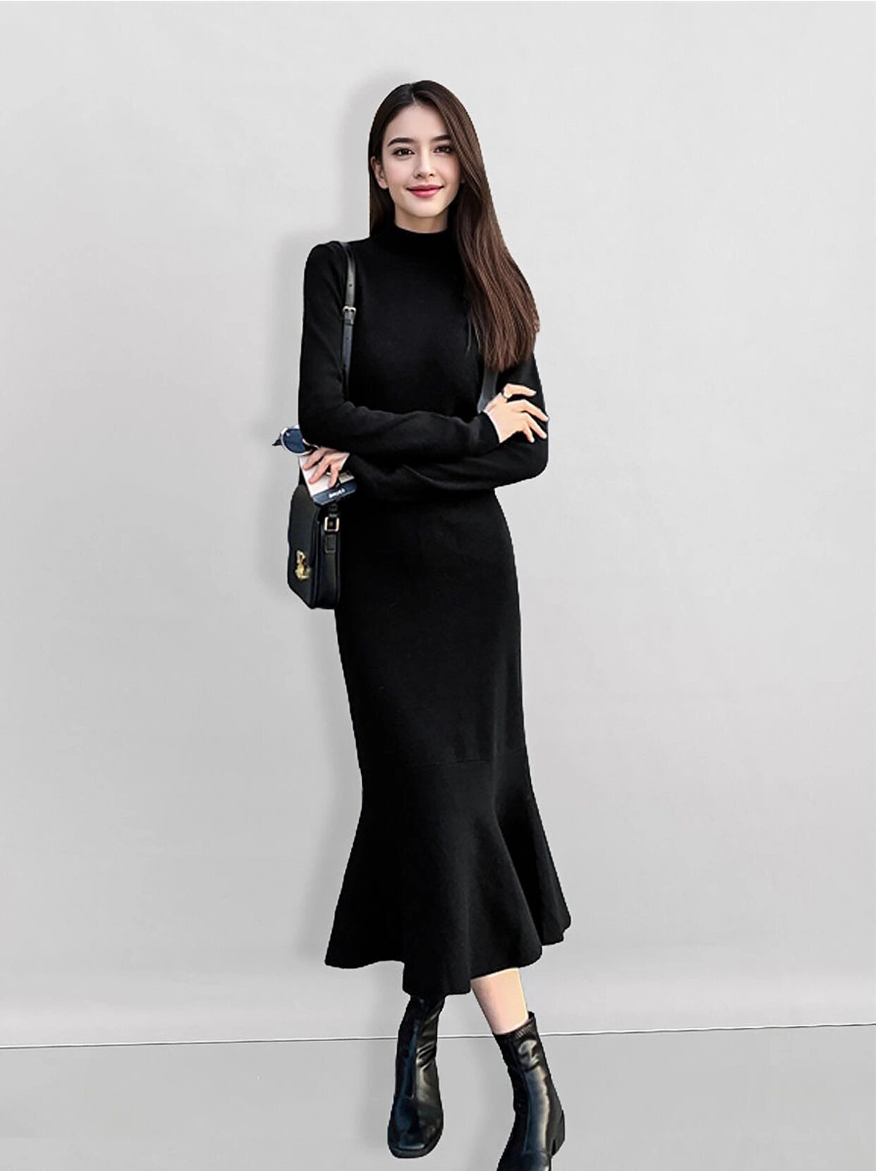 秋季女装内搭打底高领鱼尾连衣裙子女