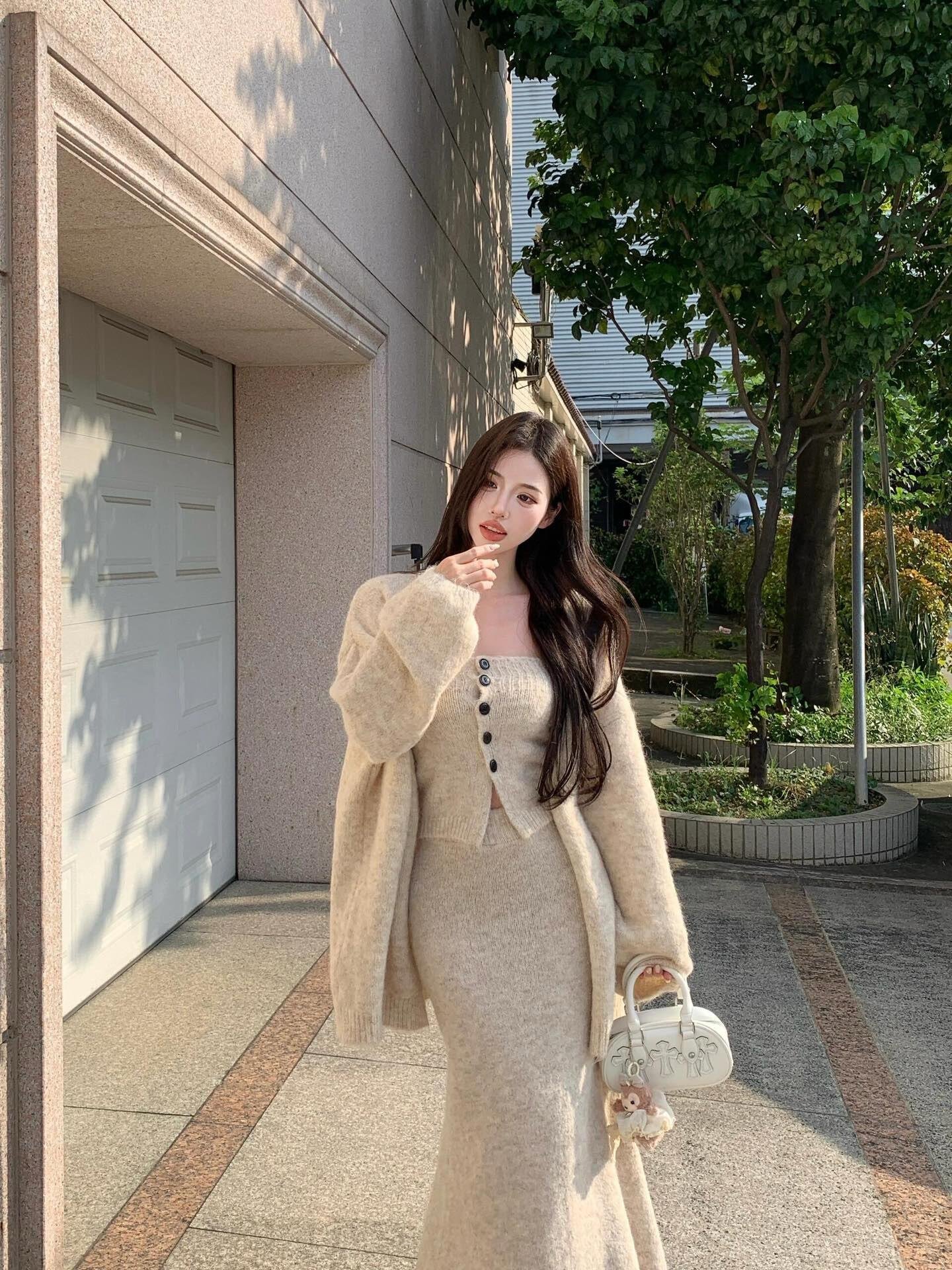 法式毛衣套装连衣裙子女秋冬季2024新款
