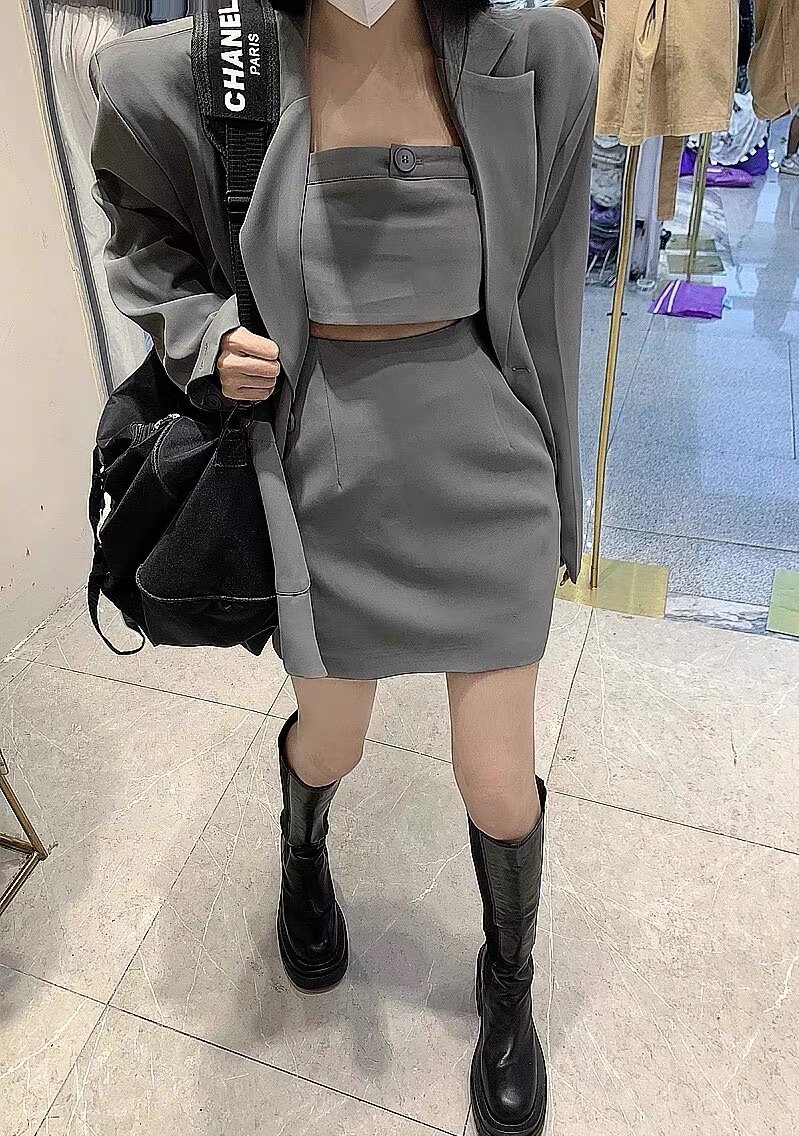深秋初冬高级感西装短连衣裙穿搭一整套