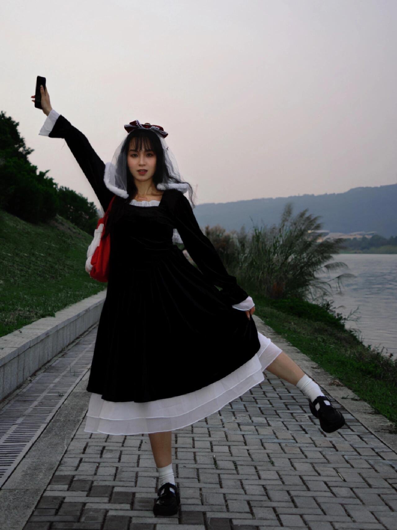小个子内搭气质长裙黑色金丝绒连衣裙