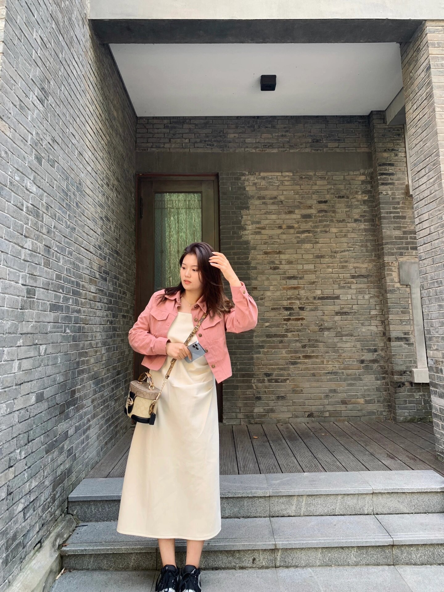 法式吊带连衣裙梨型身材穿搭一整套装长裙