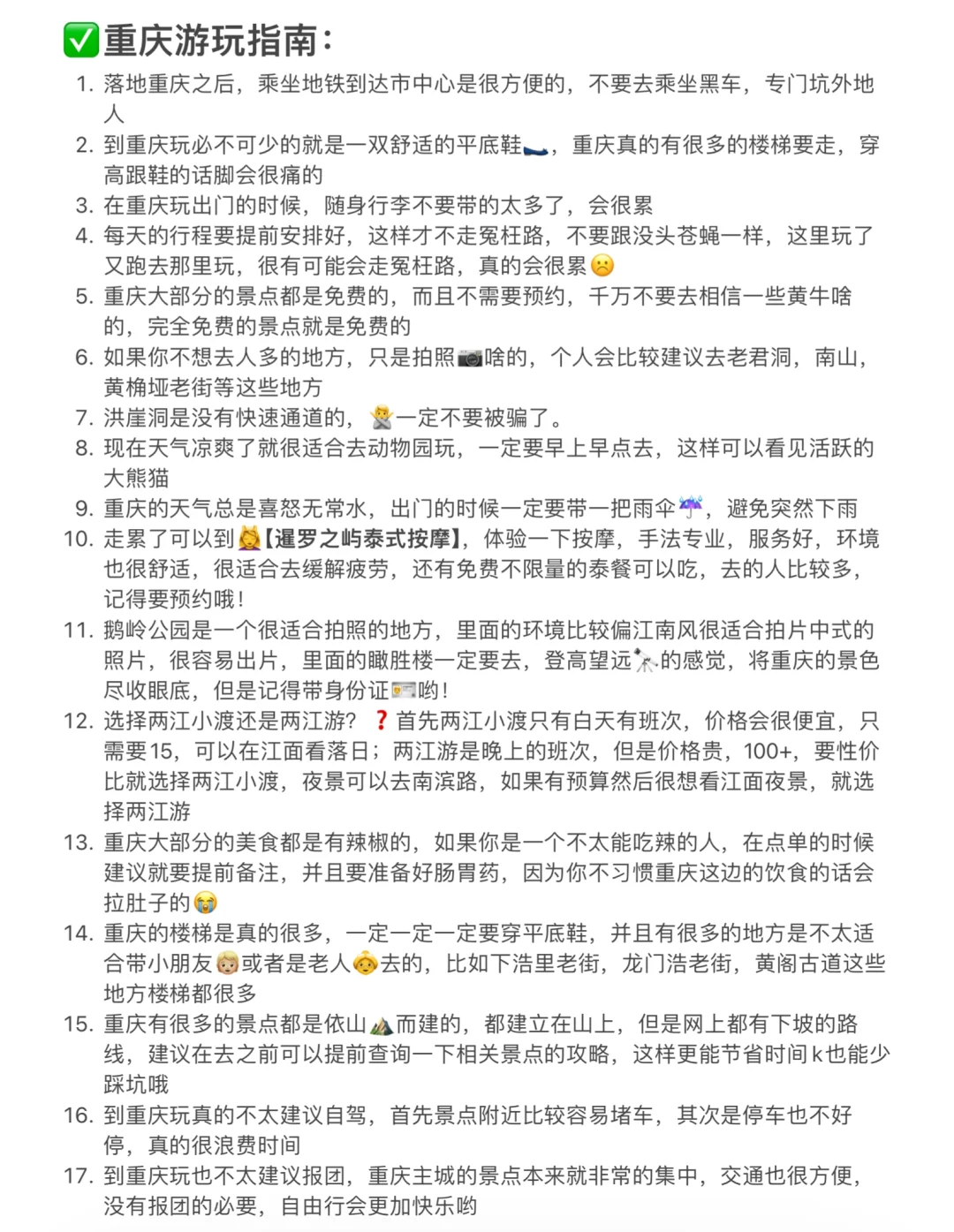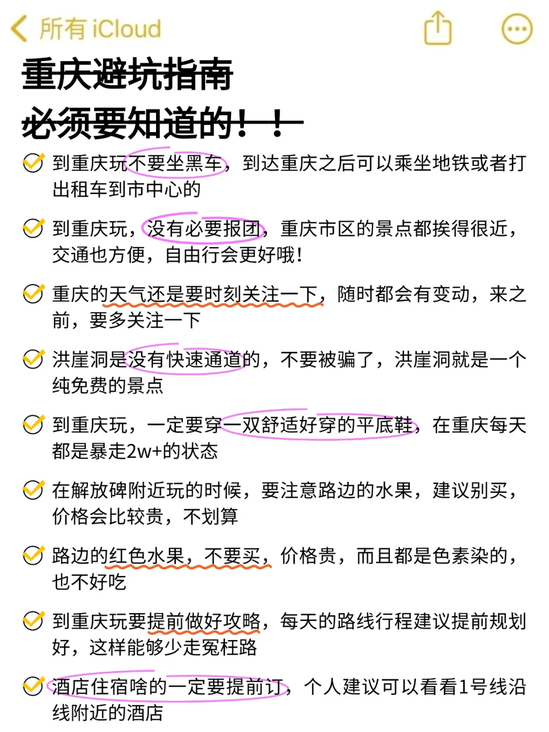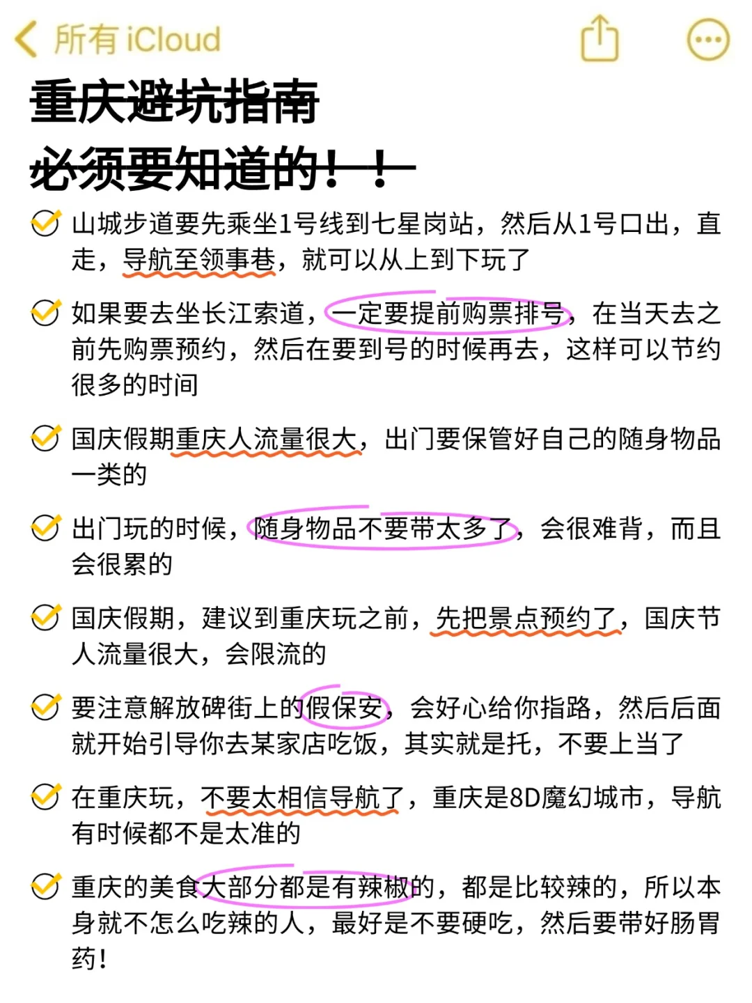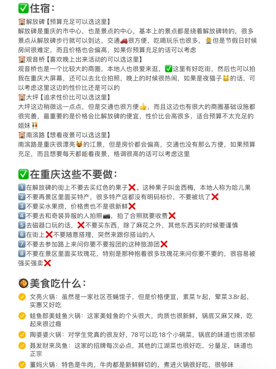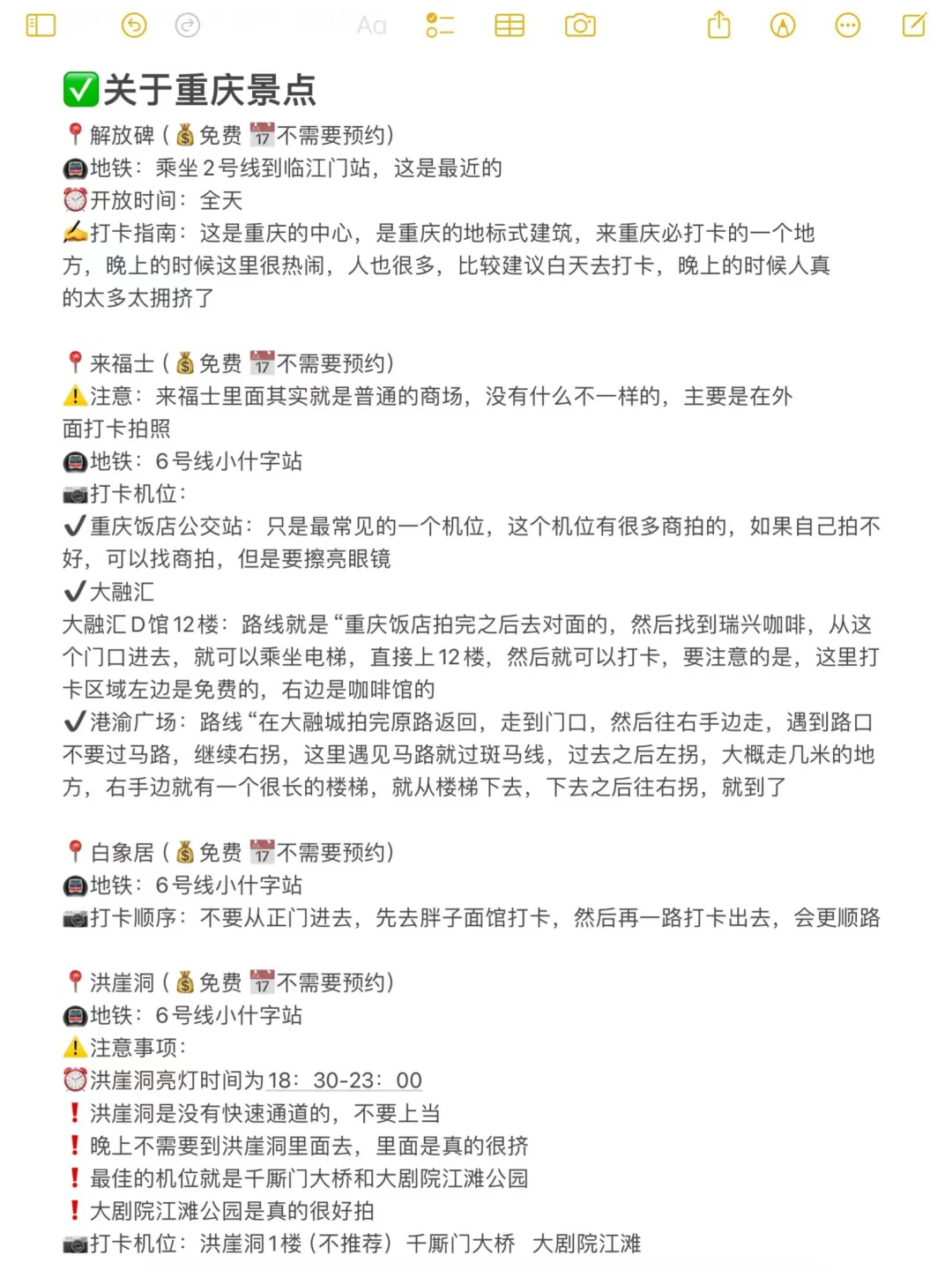 重庆玩儿还是要这样,按地图的方式整理行程才好,少走冤枉路!来重庆这样做攻略,真的很实用!!! . p1-p2:三日游行程 p3-p10:关于住宿,景点等注意事项