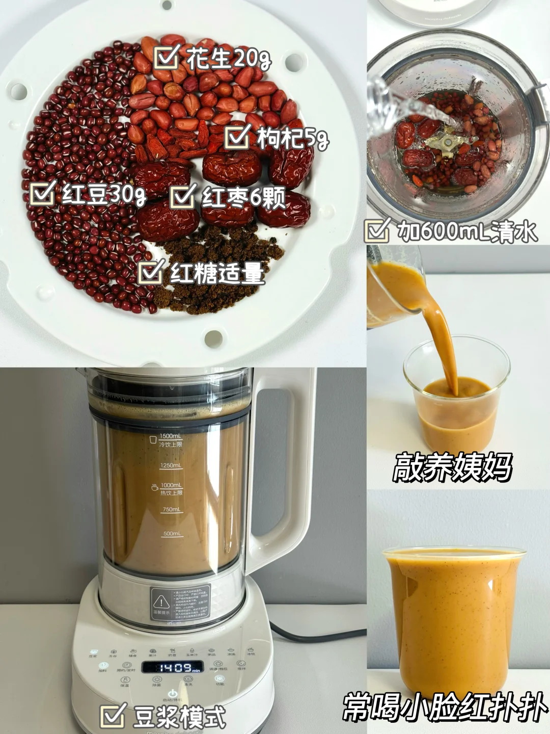 6️红豆➕花生➕红枣➕枸杞➕红糖(五红豆浆)