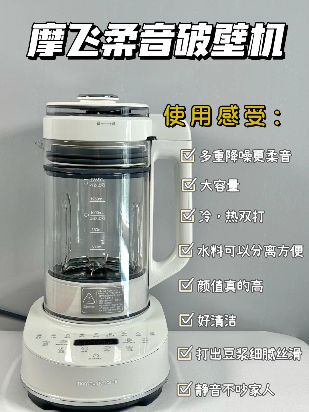 🌈最近一直在用这台摩飞柔音破壁机,用它榨出的豆浆,米糊,果蔬汁都非常细腻丝滑,无颗粒感!真的很爱它的双层降噪,声音比我之前用的破壁机小很多!它的陶瓷不粘涂层,平时我放奶粉或者牛奶一起打豆浆,也不粘不糊底,清洗也简单,用清水冲冲就干净了。