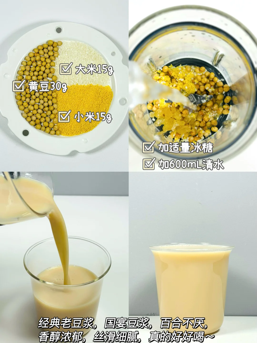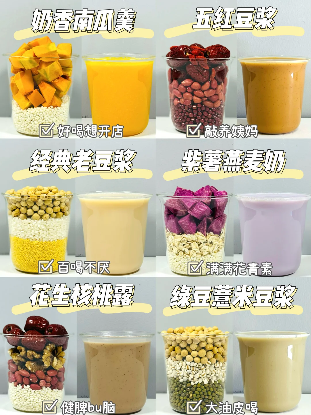 将所有食材放入破壁机中,豆浆/米糊模式即可。每款根据自己喜欢的甜度加适量冰糖一起打!