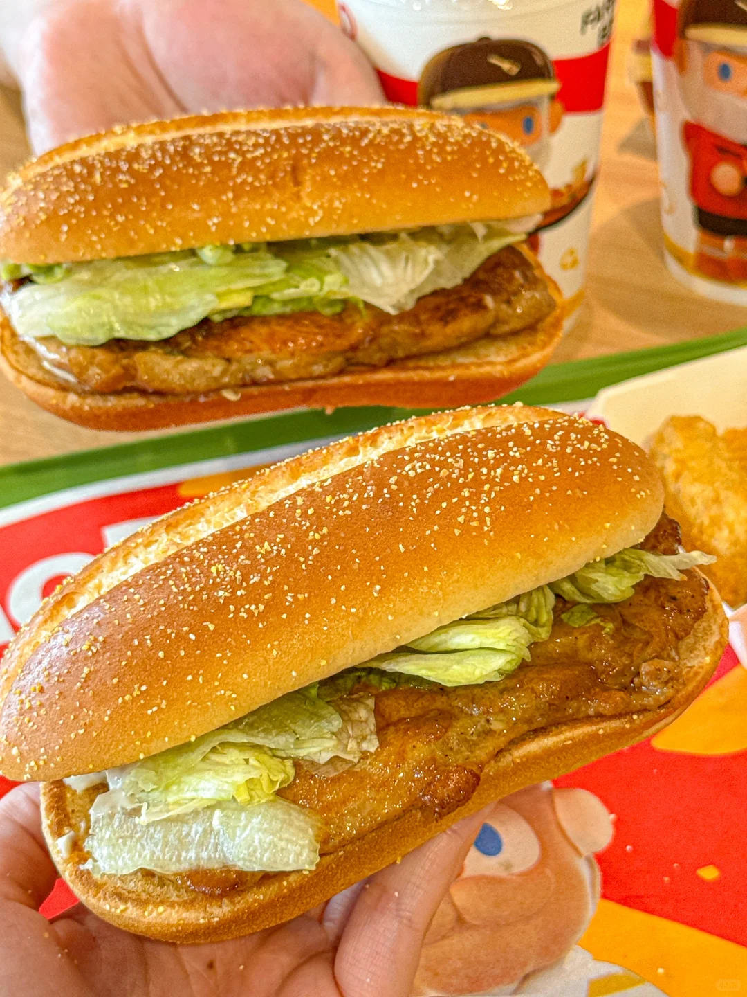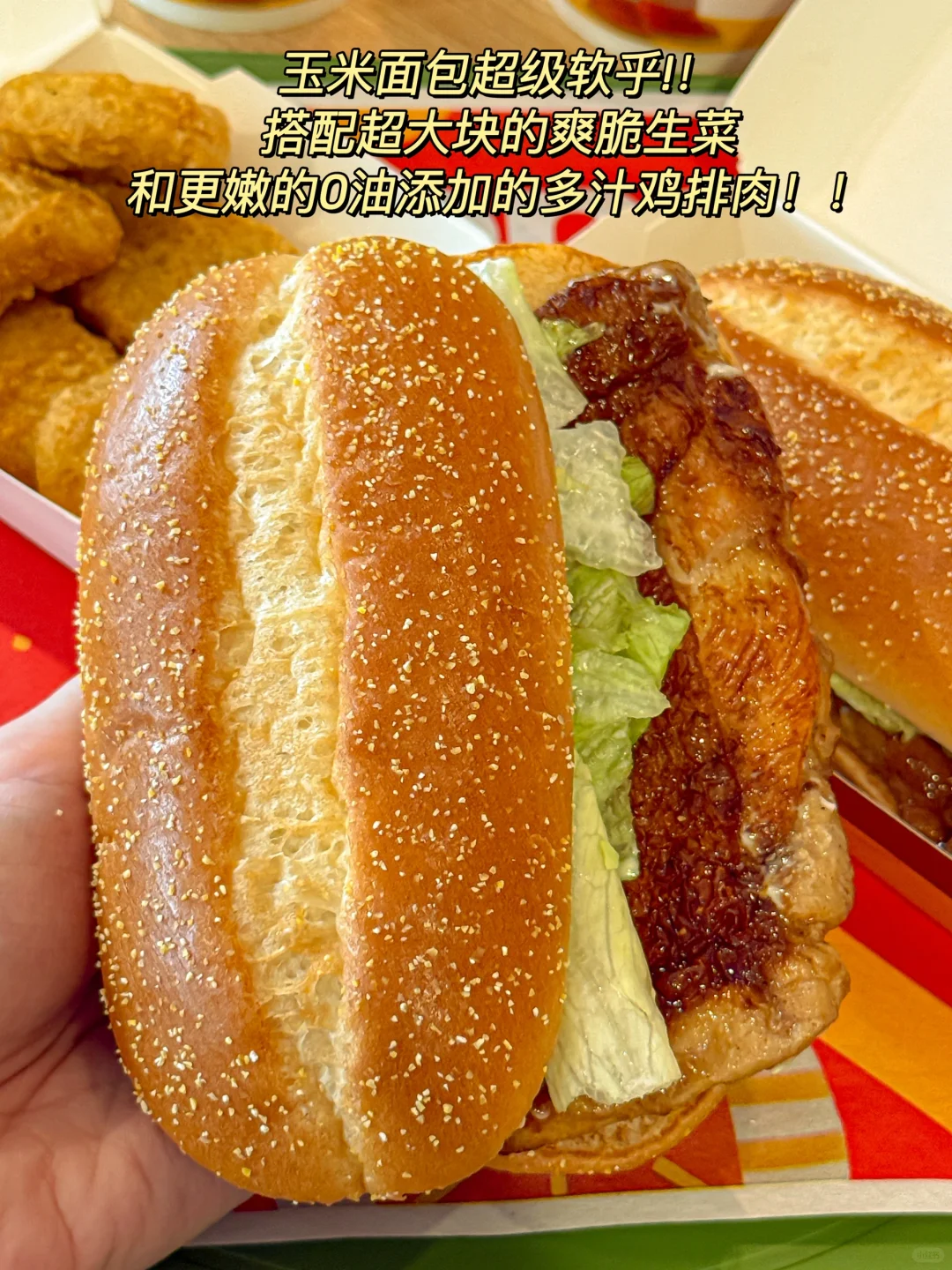 搭配超大块的爽脆生菜和更嫩的0油添加的多汁鸡排肉!!