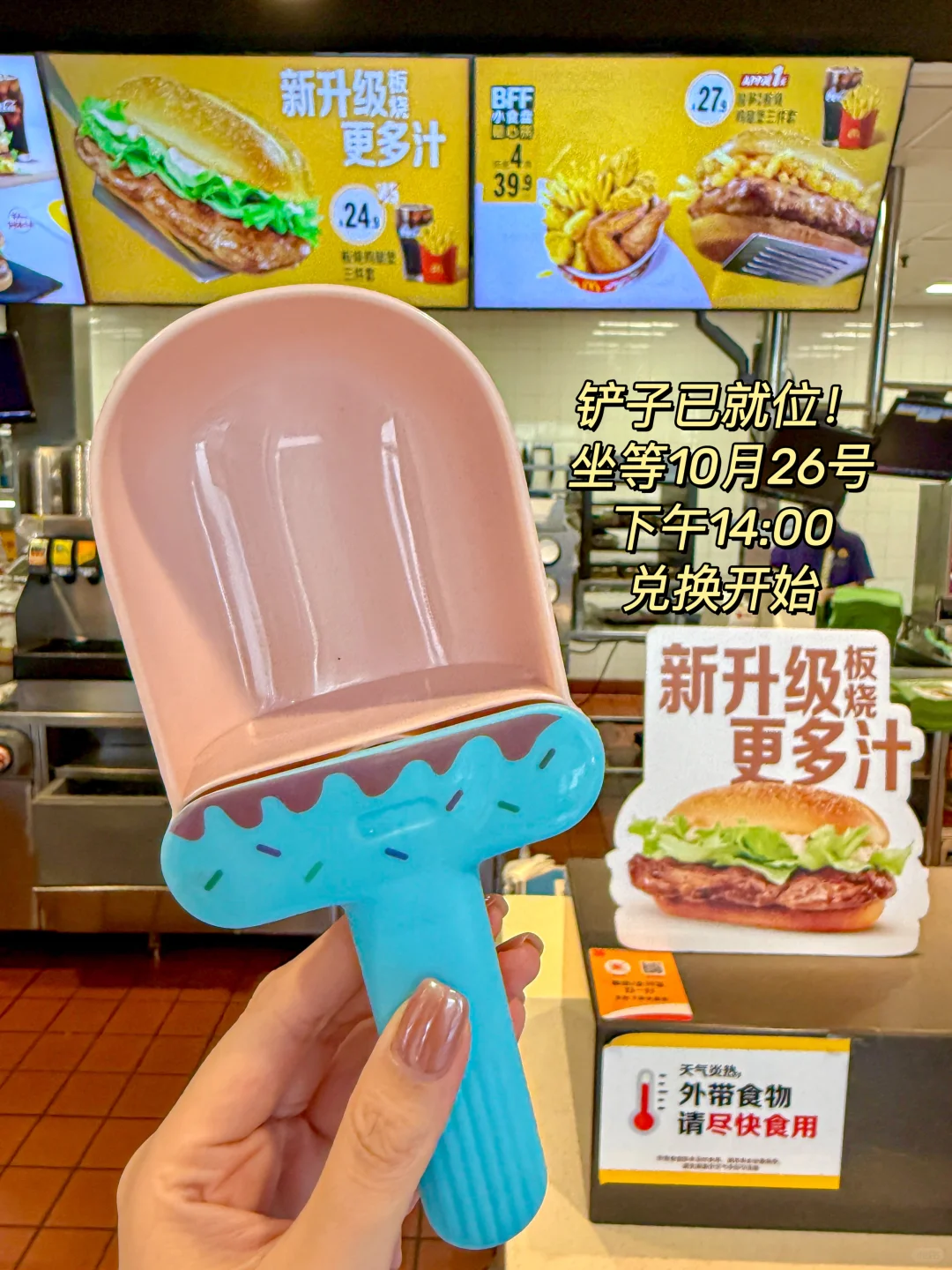 10月26日当天14:00 — 17:00 只要带上铲子到门店就能吃上新升级的板烧鸡腿堡!!