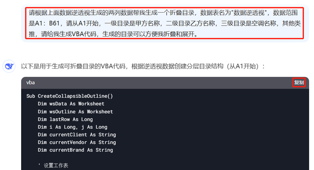 AI生成折叠目录接下来将之前提取的数据做数据逆透视,根据数据逆透视的结果做一个折叠目录,输入下面的提示词。