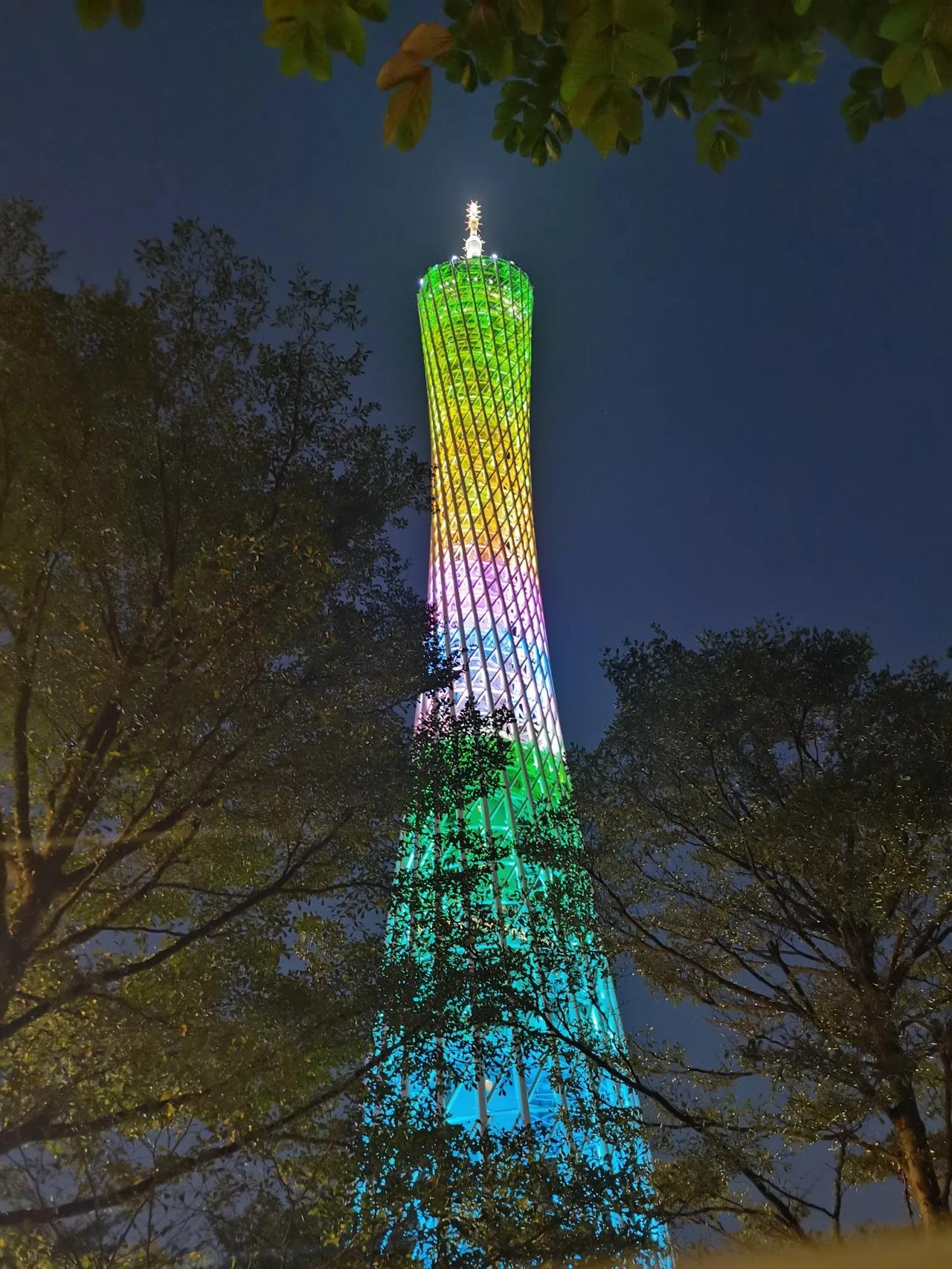 #拍一张广州塔的照片#夜幕渐渐降临,“小蛮腰”亮了,灯光璀璨,五彩斑斓,塔下的广