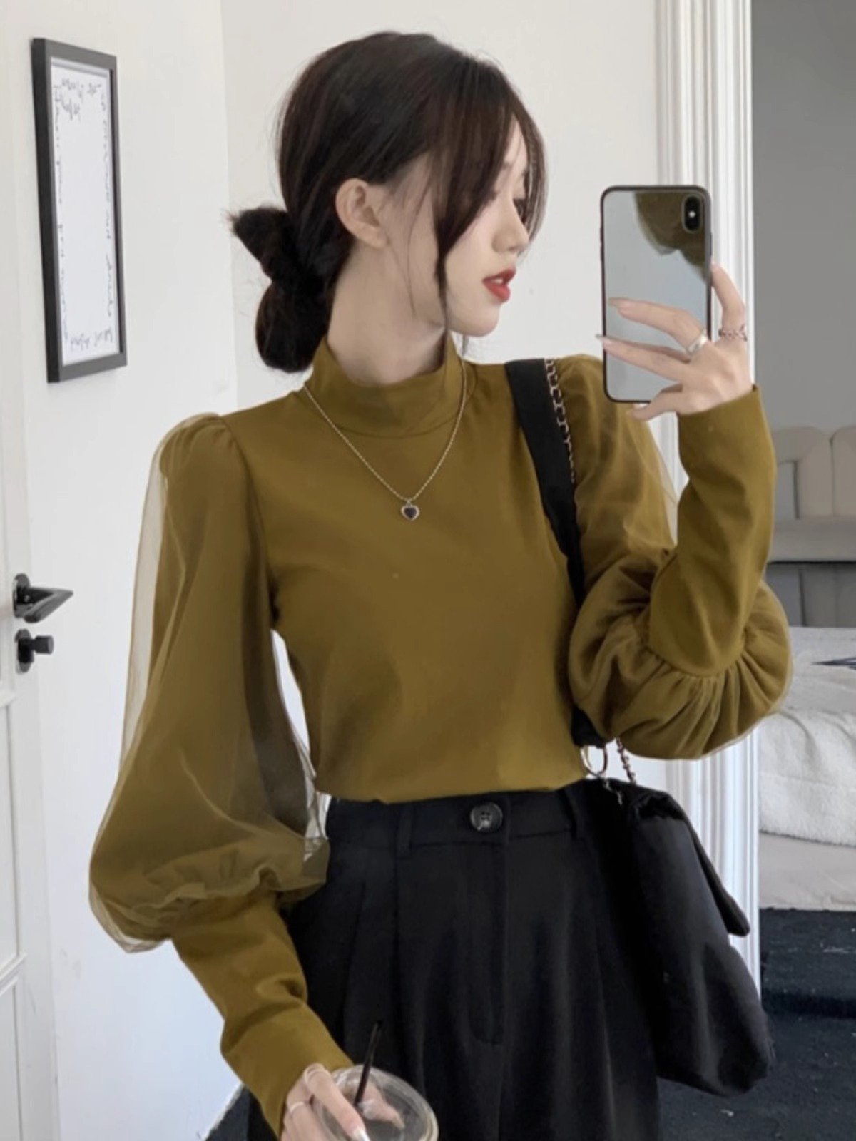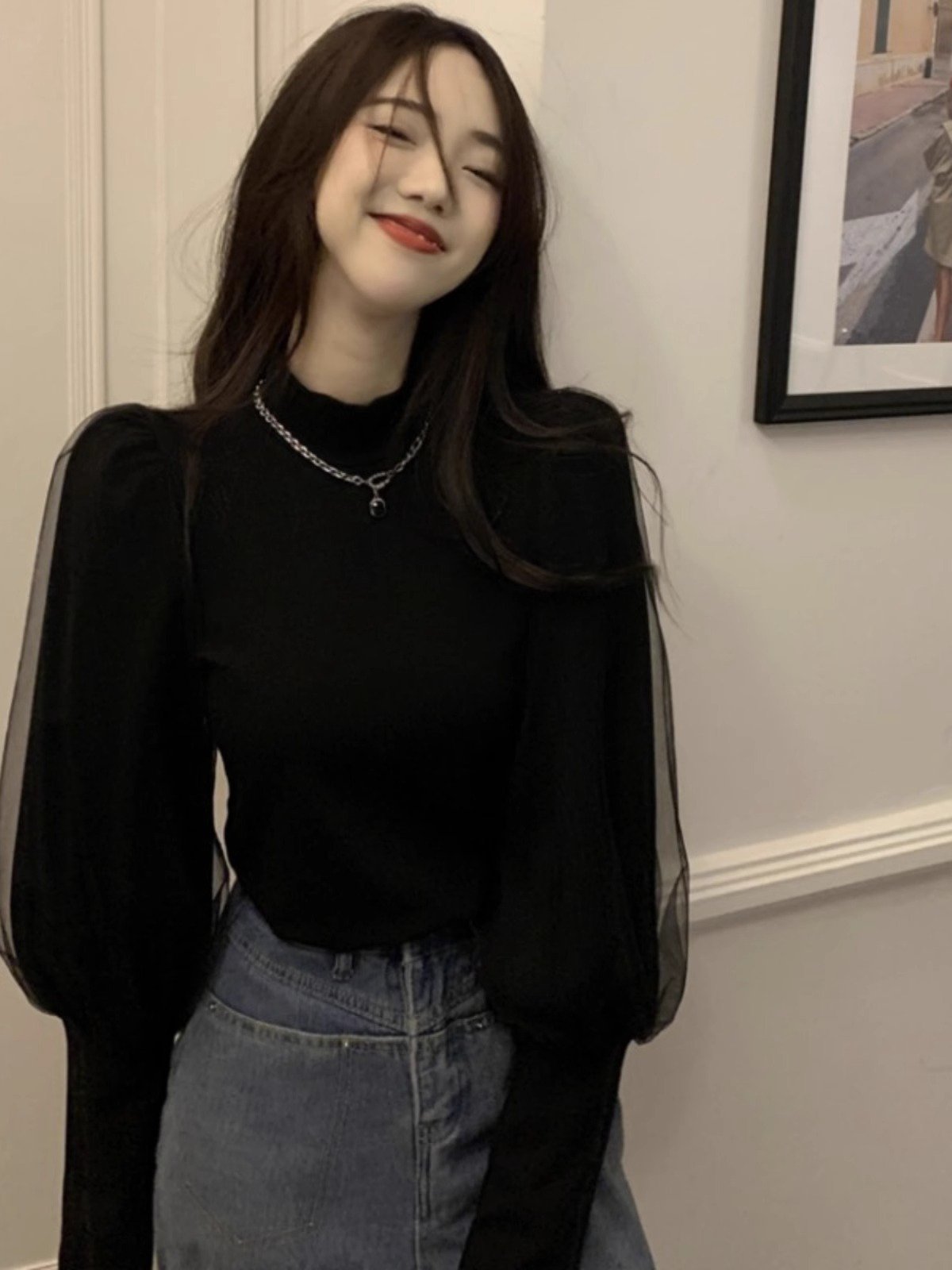 黑色半高领打底衫女春秋2024年新款内搭