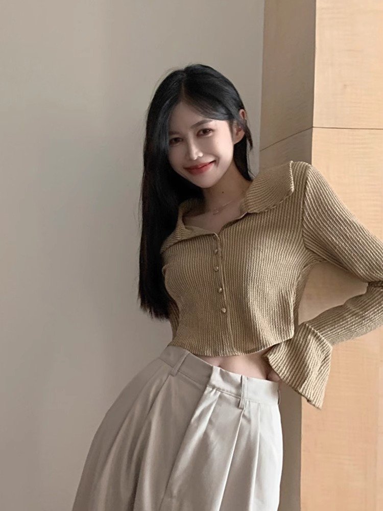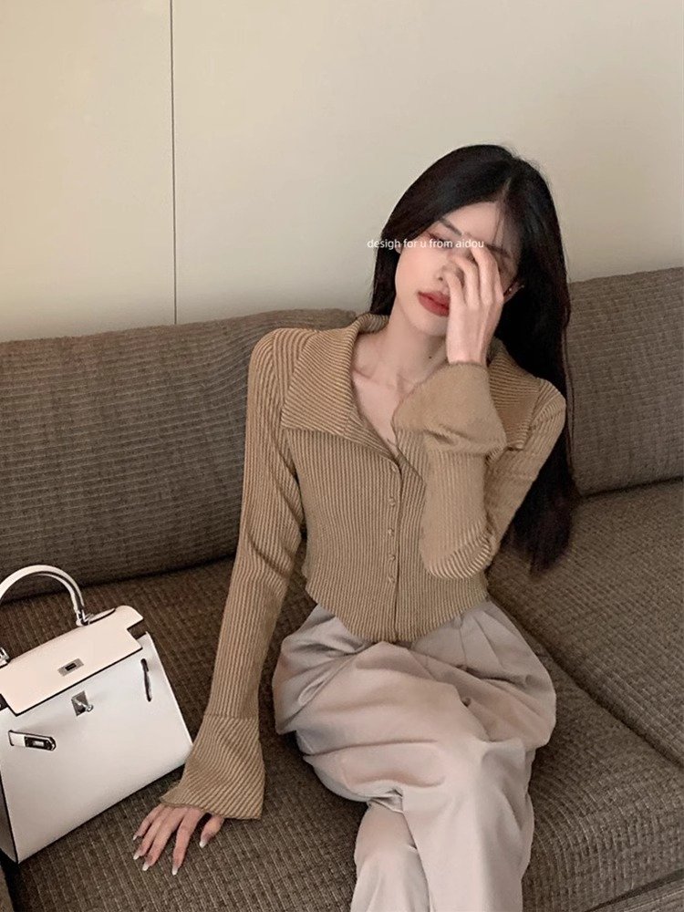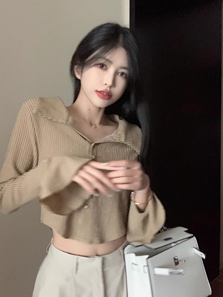 辣妹黑白条纹喇叭袖衬衫女早秋设计感小众大