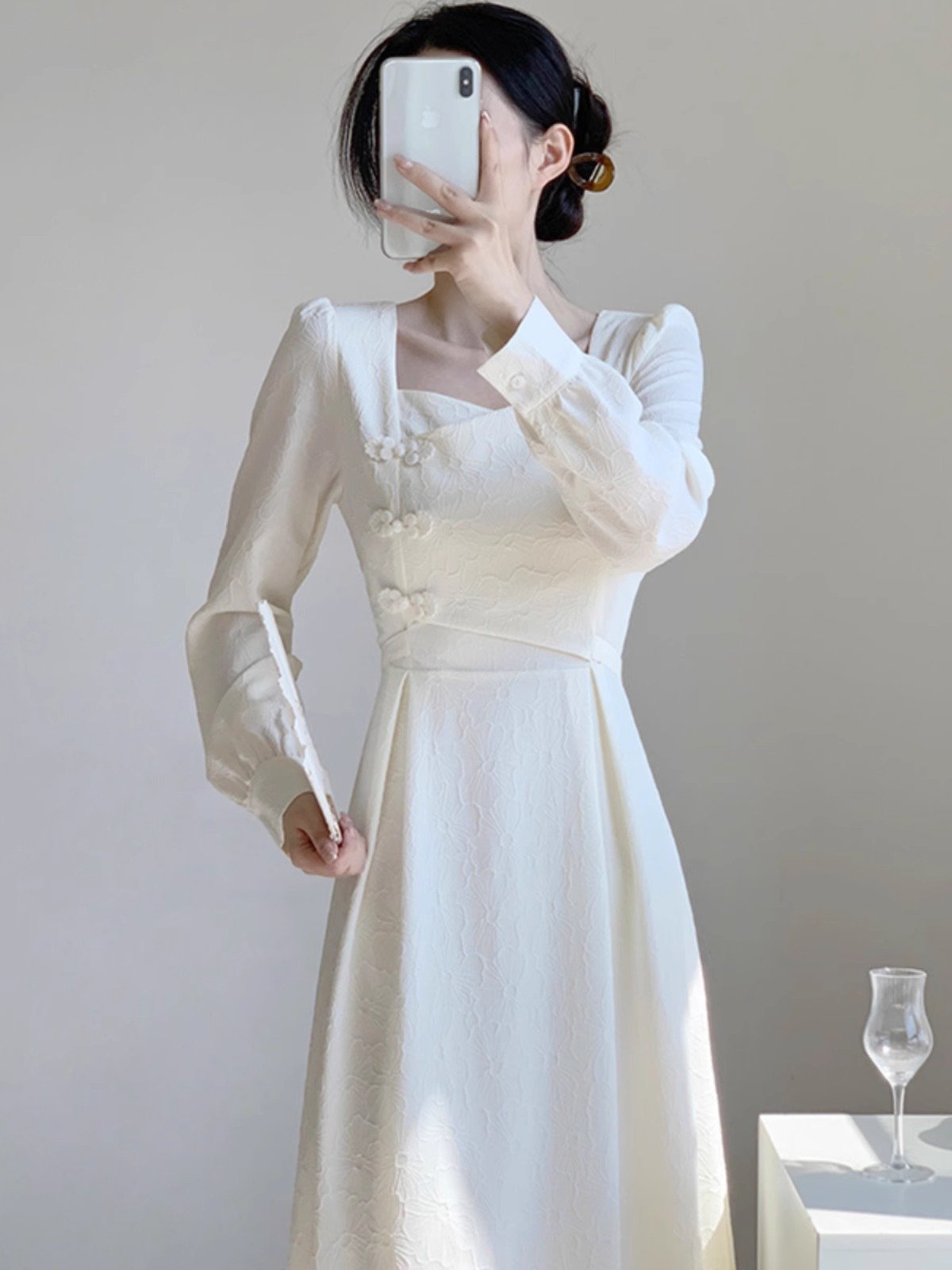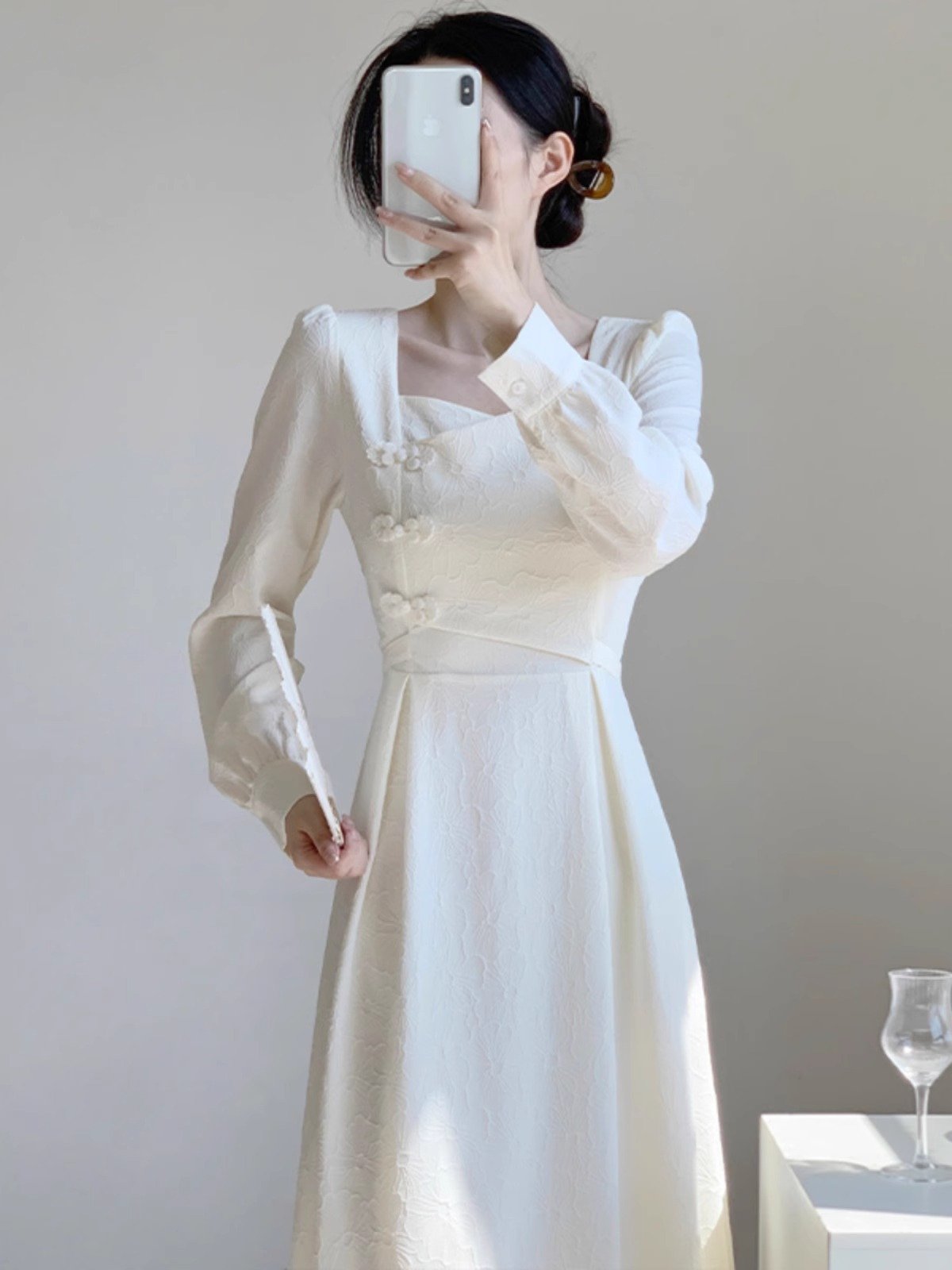 新中式国风改良旗袍连衣裙女秋冬富家千金穿
