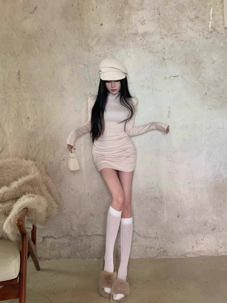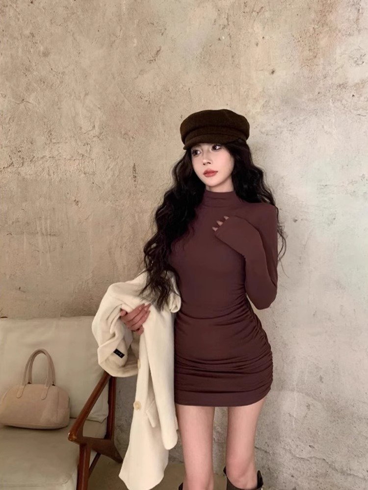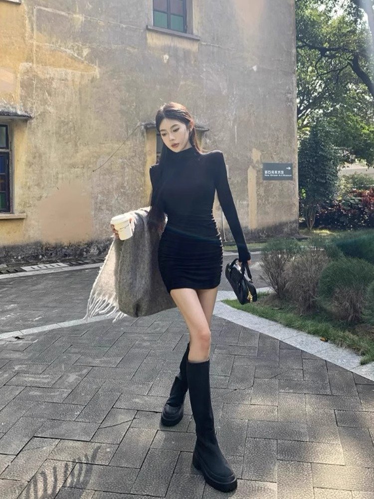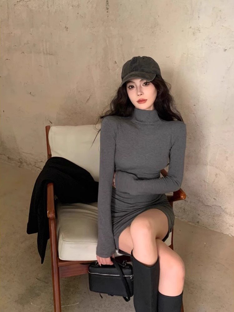 性感磨毛半高领连衣裙女早秋季辣妹内搭打底