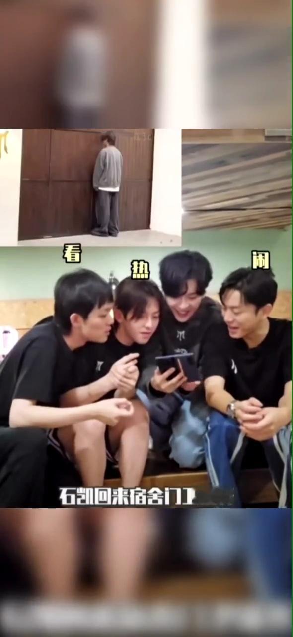 #披哥背后蛐蛐石凯没进去宿舍# 徐海乔刷到石凯没进去宿舍的视频,拿给韦礼安符龙飞