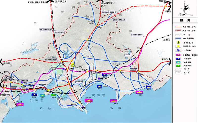 针对“弱中心”现状,规划由此提出,将汕尾中心城区和海丰县城打造为组合型城市,共同带动市域经济发展。
