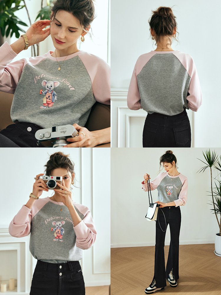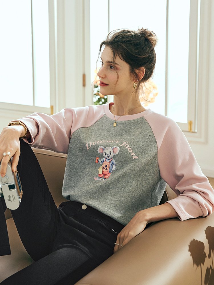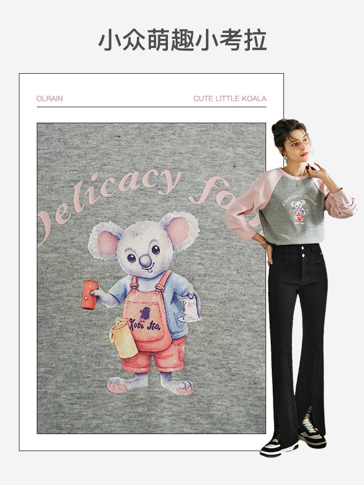 甜趣时髦度!复古萌趣小考拉插肩长袖T恤