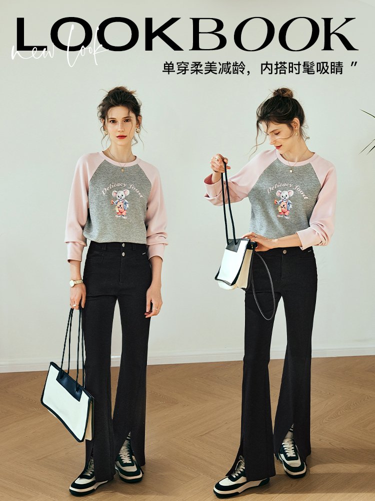 环葆有机棉针织面料,源于天嘫,亲肤透氣;呵护每一寸肌肤,久穿不易起毛球,易于打理;粉色撞色圆领以及插肩袖设计,甜美减龄;前中小考拉印花图案+字母点缀,年轻有活力