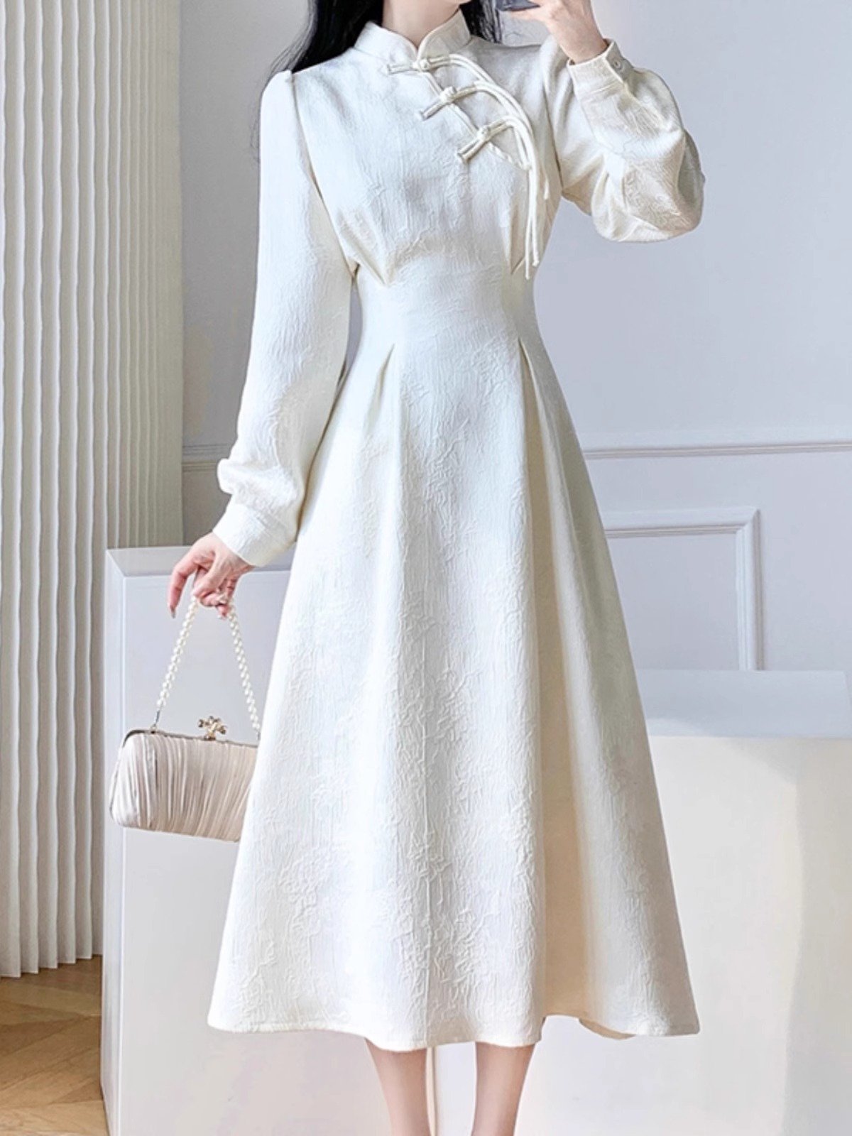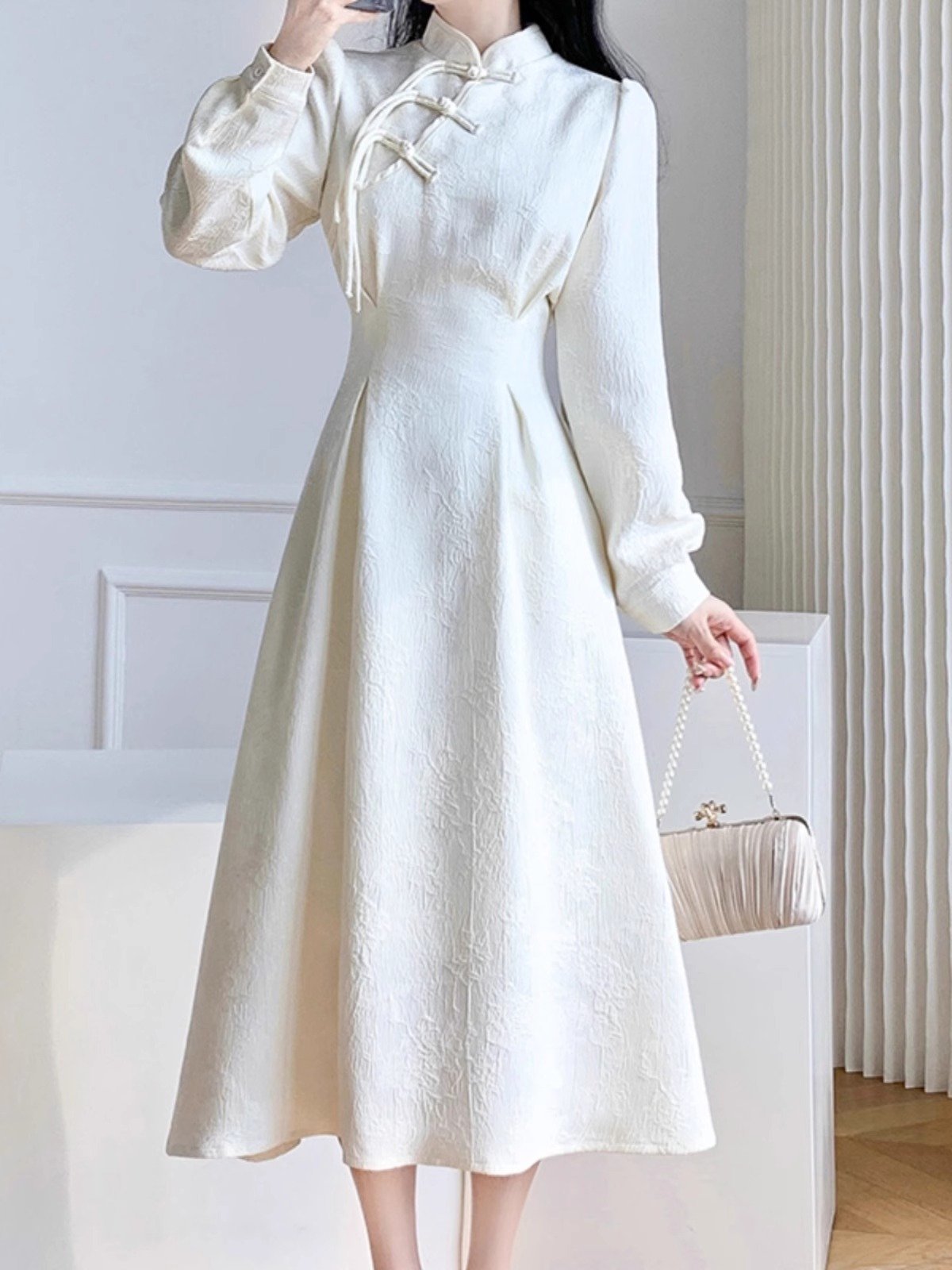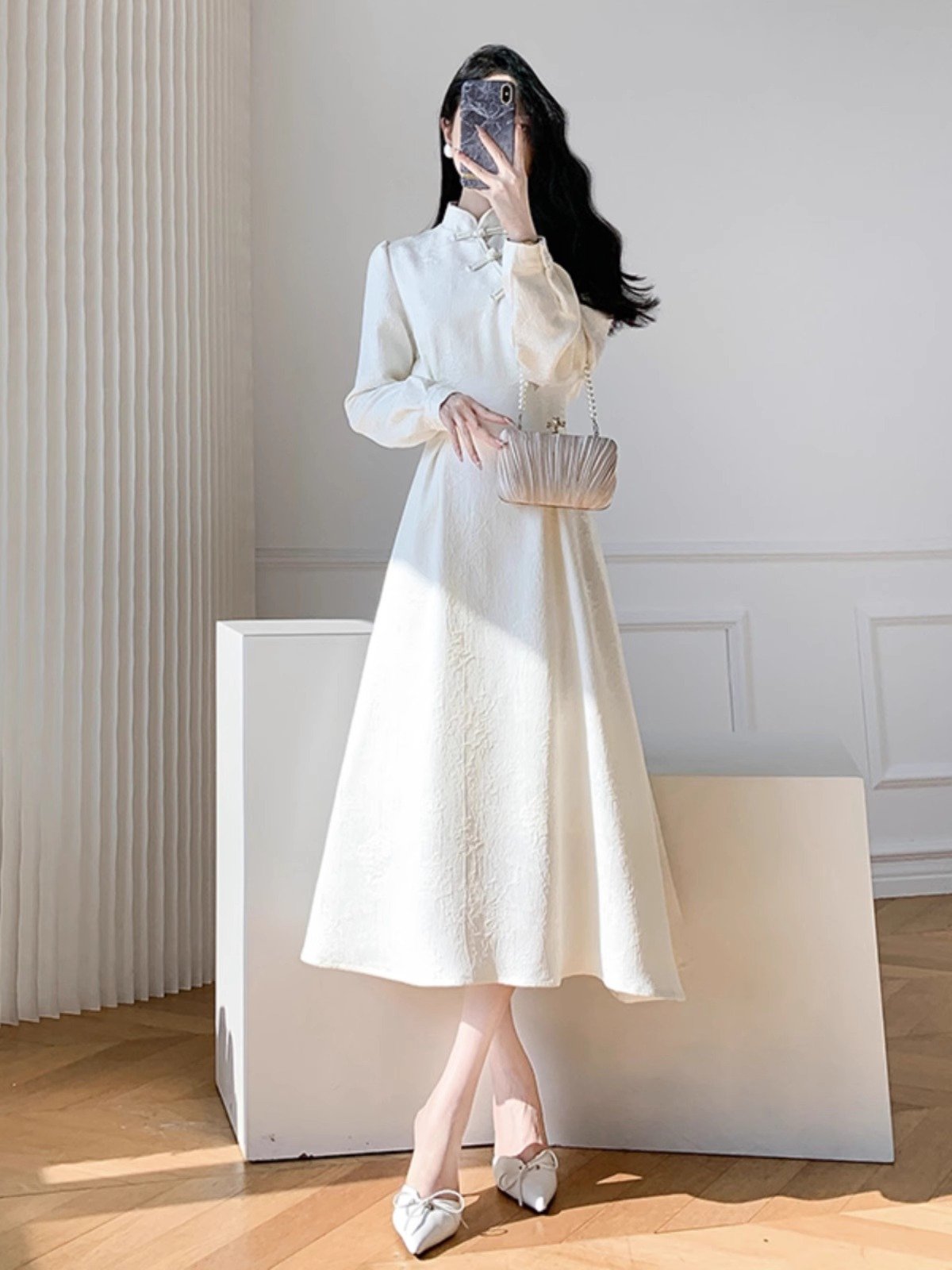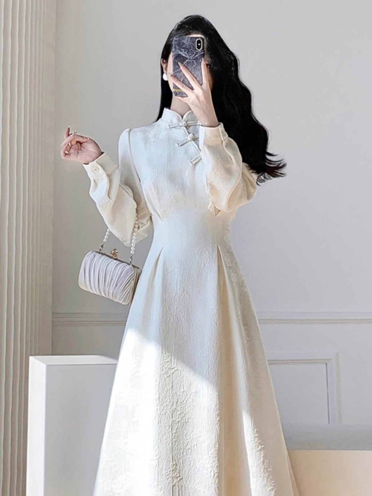 新中式国风改良旗袍浅色连衣裙女秋季高级感