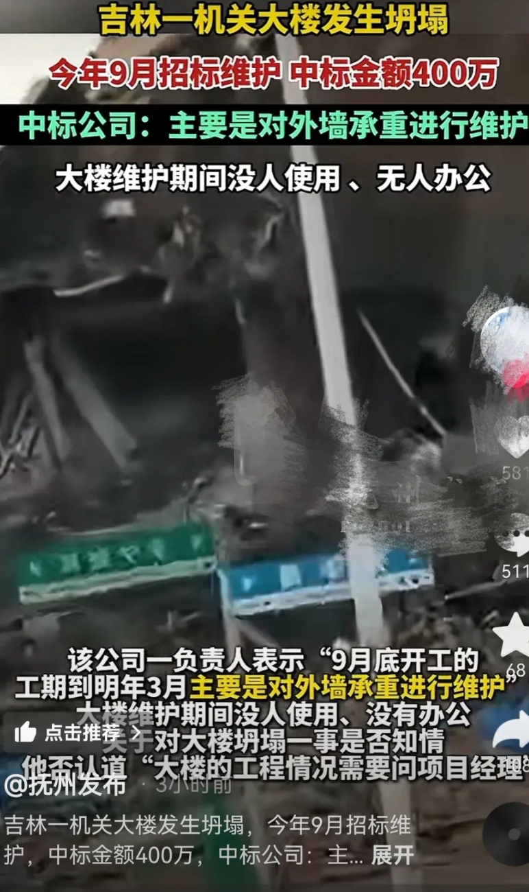 吉林市的地税大楼突然塌了,这一下子,有仨方的人慌得不行。