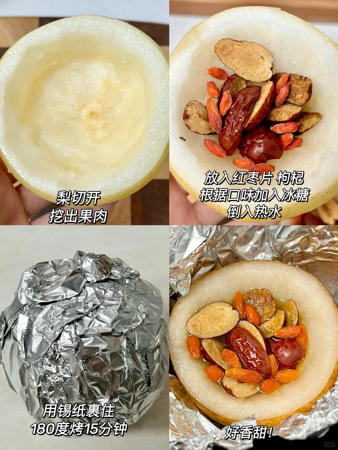 没想到烤出来这么好喝 整个梨都更香甜了~暖暖的喝一口好喜欢!! 简单又好喝~厨房小白去试试