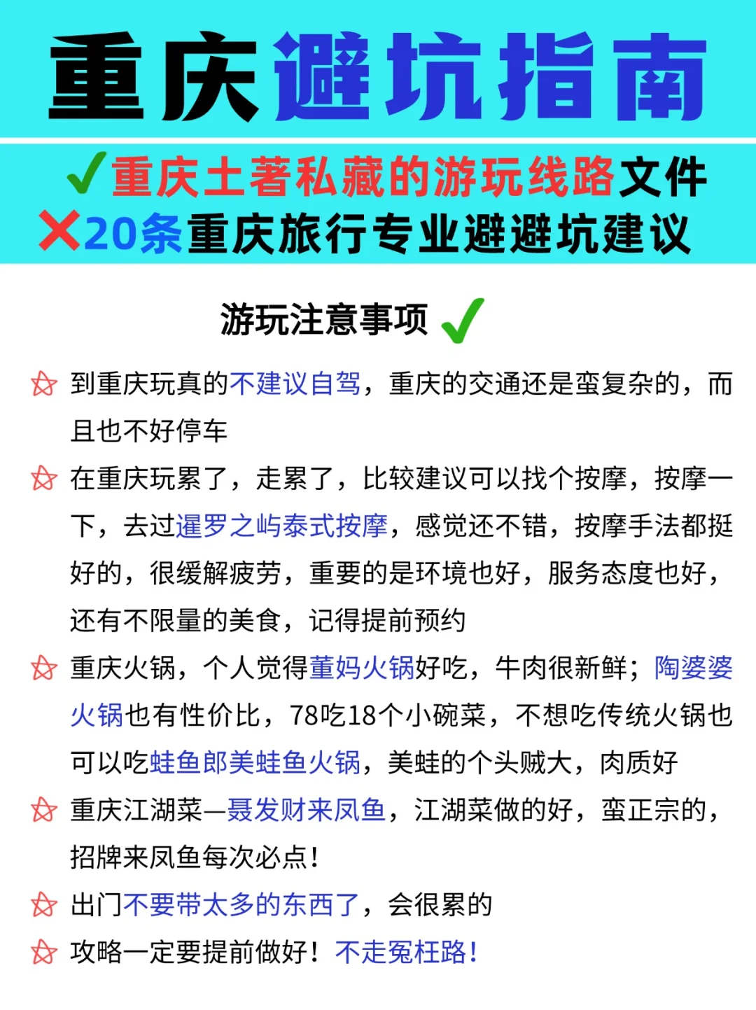 各位要到重庆玩的姐妹们看过来!给大家写了很多的干货,包含了景点,住宿,交通等等!真的是私藏版的避坑指南!到重庆之前先看看!