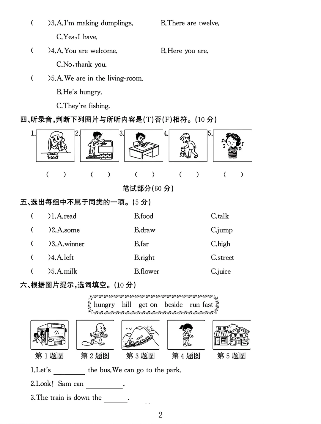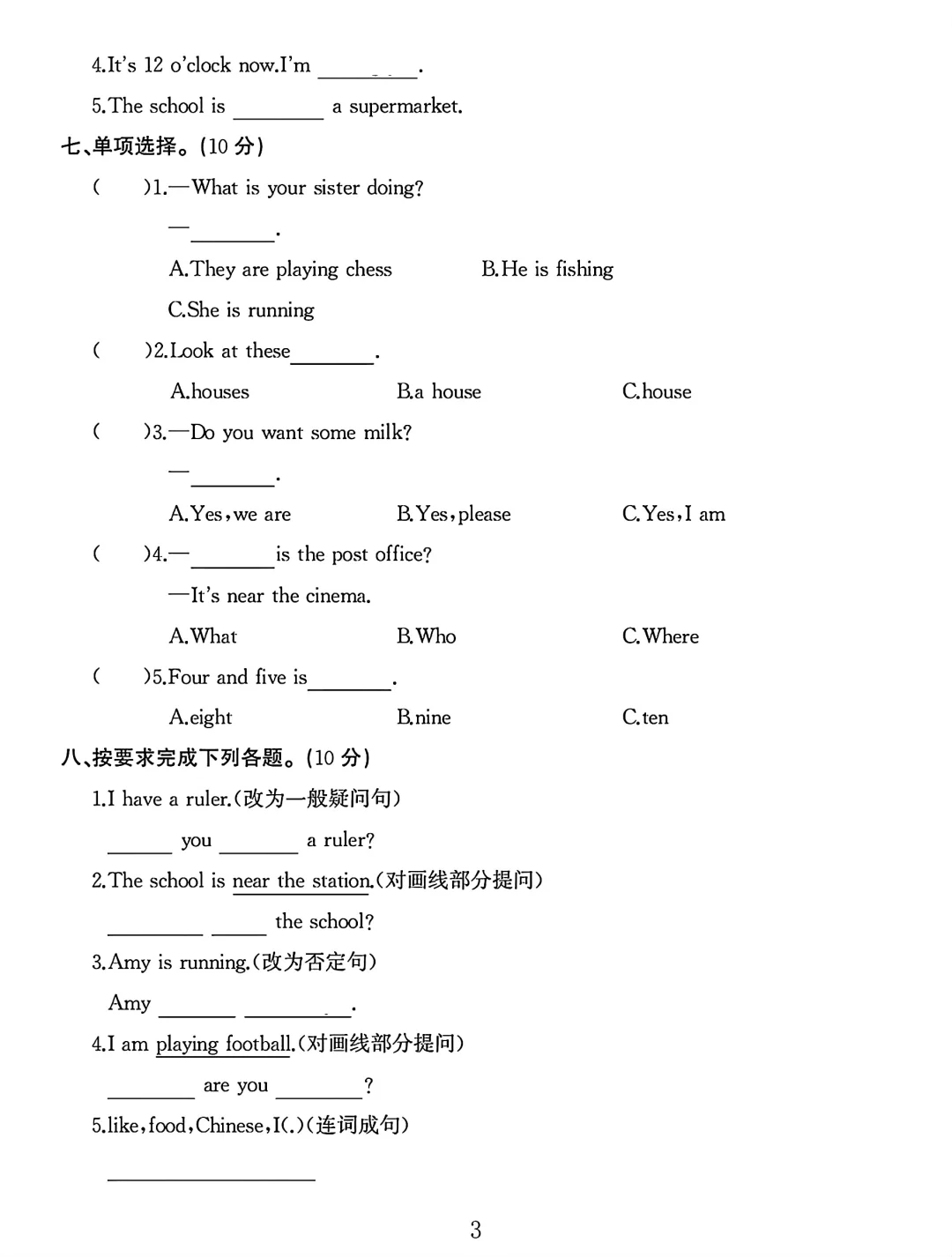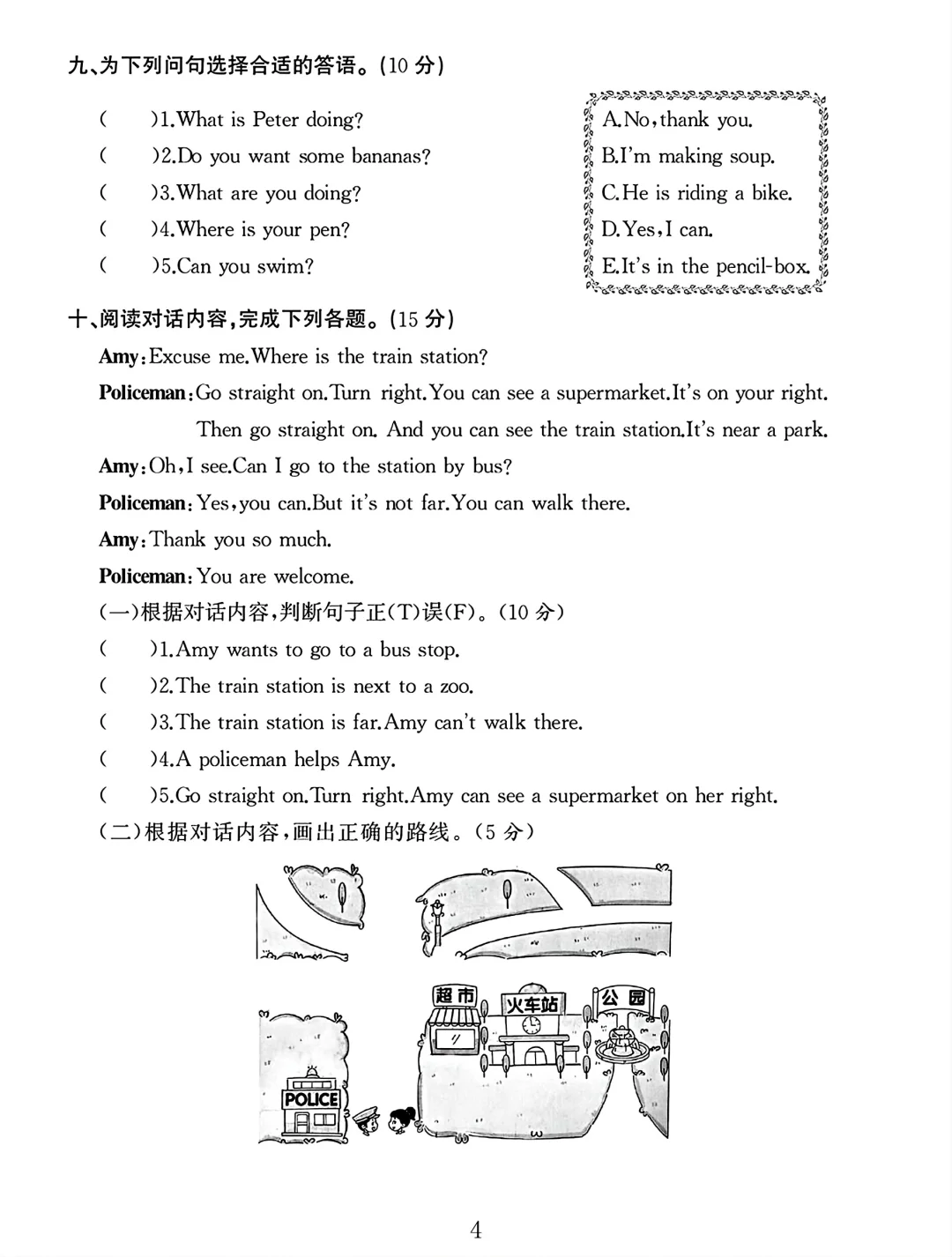 外研版 四年级上册英语 期中考试 期中试卷 电子版可打印 试卷