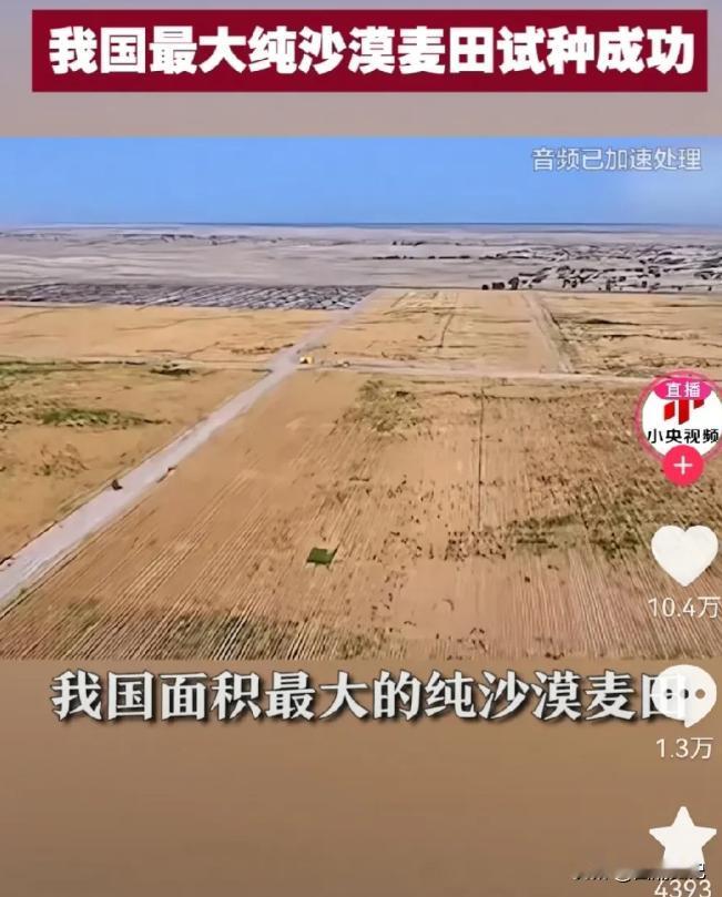 中国工程闹“乌龙”!我国专家本计划在沙漠种小麦,原以为会颗粒无收,结果小麦竟然亩产260公斤,竟然还无意间攻克一个世界级难题,专家简直要笑弯了腰! 沙漠一直是人类心中挥之不去的梦魇。狂风卷着沙砾吞噬着原本肥沃的土地,留下一片荒凉。 全球每年都有大片土地惨遭毒手,变成寸草不生的“死亡之海”。这可不是危言耸听,看看卫星地图上那些触目惊心的黄色斑块,你就知道这问题有多严峻了。 对中国来说沙漠问题更是头等大事。咱国家啥都缺就是不缺人,14亿张嘴顿顿都要吃饭,这粮食安全压力山大啊!为了填饱肚子科学家们也是拼了,啥奇招都想出来了,这不他们盯上了沙漠! 沙漠种地?别闹了那地方除了沙子啥都没有,这能种出东西?一开始质疑声此起彼伏。可咱中国的科学家可不惯着这毛病,直接甩出一句“一切皆有可能”就开始闷头搞研究了。 他们把目标锁定在新疆的麦盖提县,这个地方90%的面积都是沙漠,妥妥的“死亡之海”边缘地带。要在这里种出粮食难度系数堪比登天。 首先要解决的就是沙子太“浪”的问题。这东西一阵风就能给你吹跑,更别说在上面种庄稼了。经过无数次的实验科学家们终于捣鼓出了一种特殊的溶剂,能把沙子“安抚”住还能给土壤补充点“营养”。 光“安家”还不够还得选对“住户”。普通的小麦品种在沙漠里根本活不下去。科学家们又花了数年时间培育出了一种耐旱、耐高温的“沙漠战士”小麦,这种小麦简直就是为沙漠而生的! 有了“房子”和“住户”还得有“水电”供应。科学家们又整了个精准灌溉系统,啥时候浇水、浇多少都精确控制,绝不让一滴水浪费。 这套组合拳下来效果立竿见影!曾经的“死亡之海”竟然长出了一片金黄色的麦田,第一批沙漠小麦的亩产量直接到了294公斤,比传统农区还高出一大截! 更让人惊喜的是种了小麦之后沙漠环境也变好了。麦茬就像一张网牢牢地锁住了沙子,风沙再大也吹不走。更神奇的是麦茬腐烂后还能变成天然肥料,让贫瘠的沙土慢慢“活”过来。 以前寸草不生的沙漠现在居然冒出了绿色的植被,这简直就是生态奇迹啊! 沙漠小麦的成功让全世界都看到了中国科技的力量。它不仅为解决全球粮食危机提供了一种全新的思路,也为沙漠治理开辟了一条新路子。 以前治理沙漠大家想的都是种树,可树苗娇贵成活率低效果也不咋地。现在好了直接种小麦不仅能固沙还能产粮一举两得,这波操作真绝了! 沙漠变良田这在过去简直是天方夜谭,但中国科学家用实力证明了:只要敢想敢干,就没有什么不可能! 这片金黄色的麦田不仅是中国科技进步的象征,更是对全世界的一个有力证明:人类有能力战胜自然,创造更美好的未来!