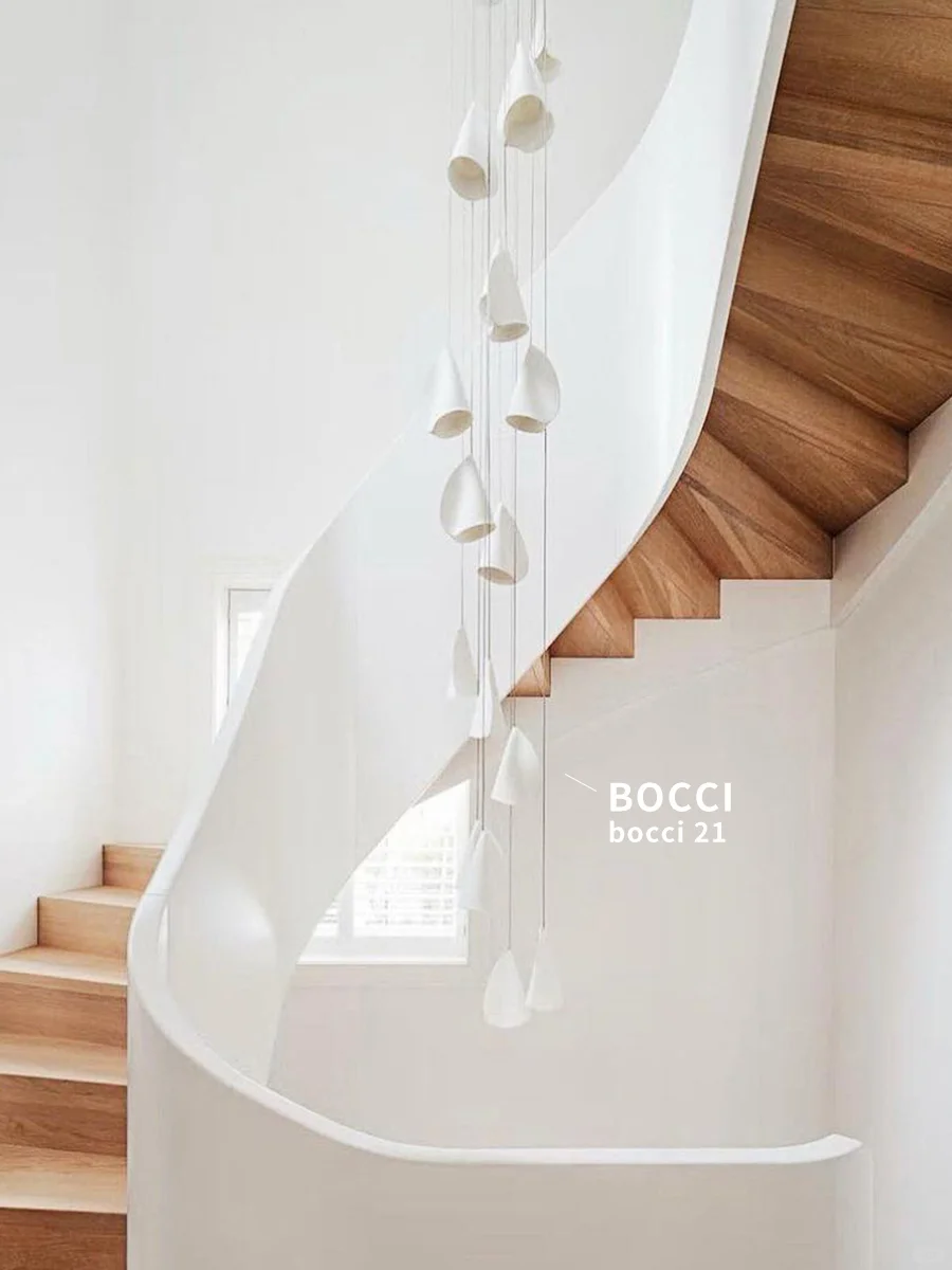 ✅在选择楼梯灯时,我们需要考虑楼梯的宽度和高度来对应不同的灯具。对于2层以上的楼梯间,选择性比较多,可以选择错落的类型,但是一定要提前做好定位和高度。
