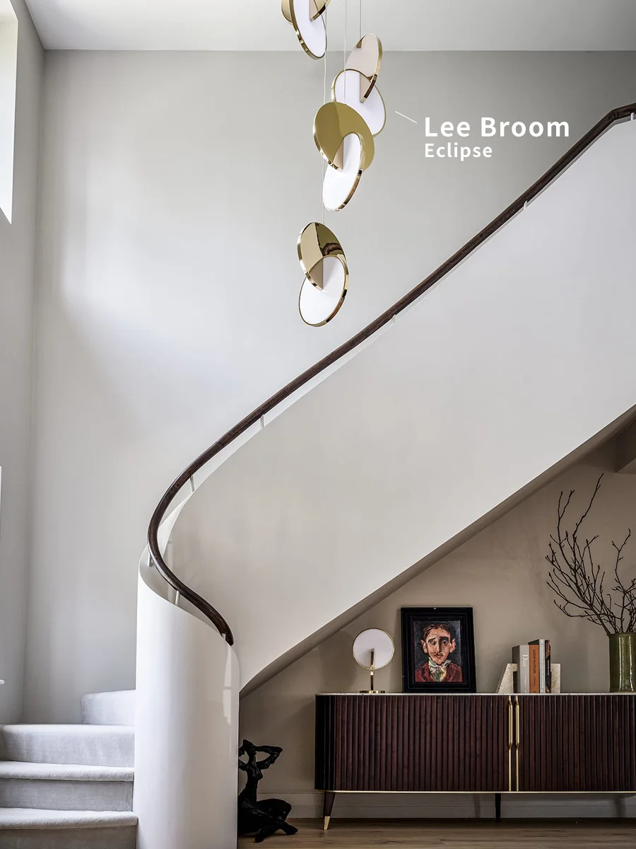 🔘有楼梯井的楼梯吊灯建议使用多头吊灯装在楼梯井正中间,灯与四边楼梯扶手保持40厘米以上间距。