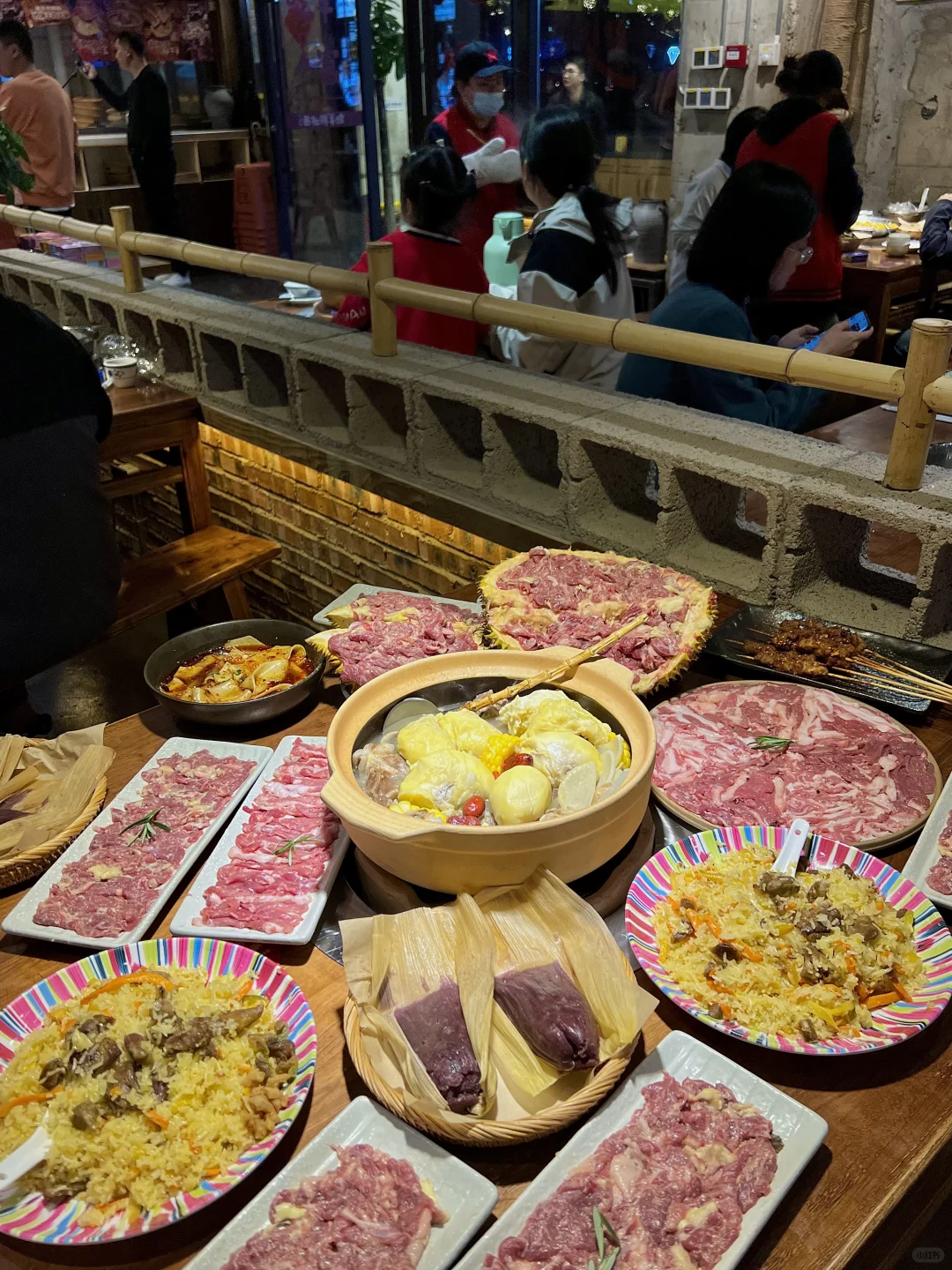 榴莲羊肉煲!真的好炸裂,好香啊!浓郁的榴莲加上新鲜羊肉,好好吃!😭😭 不愧是长沙最大羊肉馆,现切的羊肉、羊肉手抓饭都没什么膻味!! 还有各类特色小吃:黑米粑粑、青海奶糕、新疆酸奶球、奶酪包、斑驳小蛋糕,在这里都可以吃到~ 每到饭点,人都敲级多!环境和服务都无可挑剔,性价比真的绝!