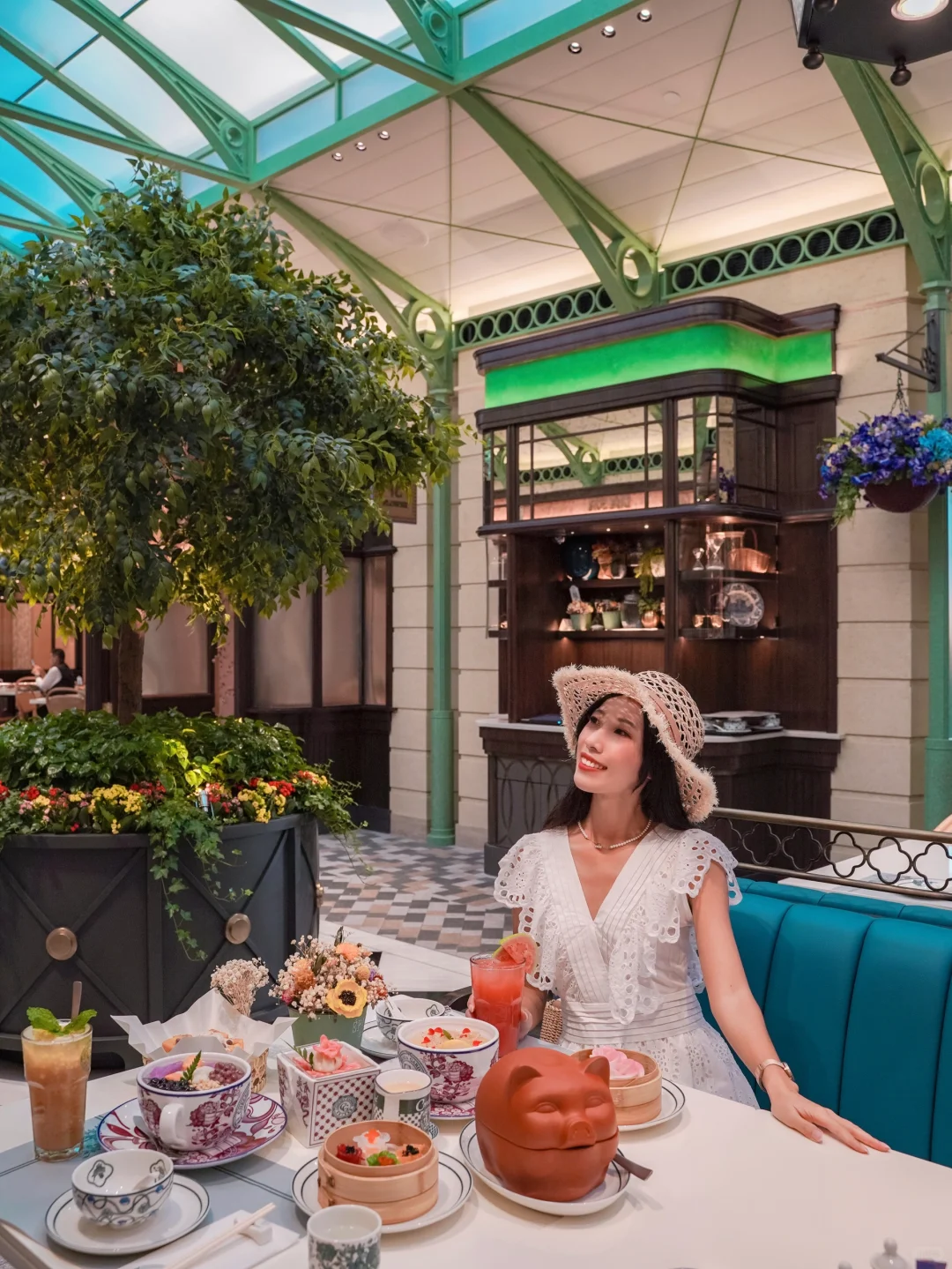 推荐坐在餐厅中庭玻璃顶下,光线很好拍照很出片哦!