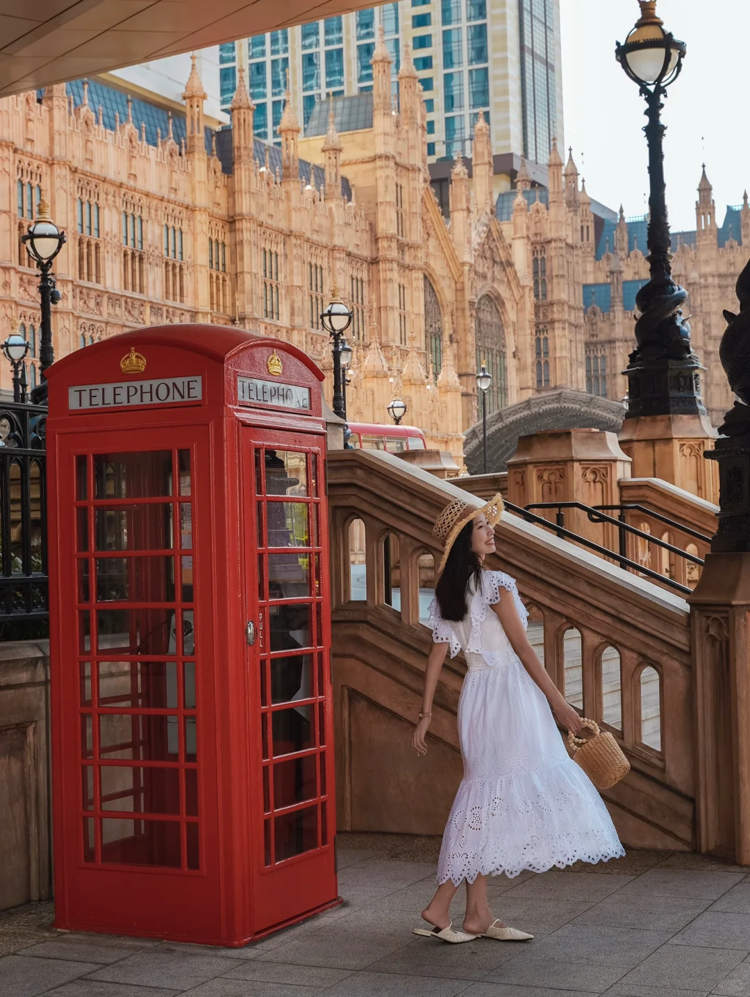 复刻伦敦原版1:1的大本钟、英伦红色电话亭、1966伦敦原版红色双层巴士、黑色的路灯这些英伦元素都能看到,如同置身在伦敦!