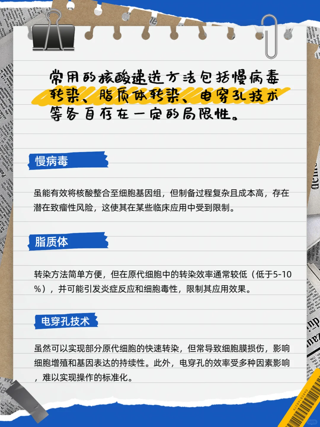 [四R]使用辅助技术:使用电穿孔、核糖体,蛋白纳米颗粒等物理或化学方法辅助转染(P3P4)。