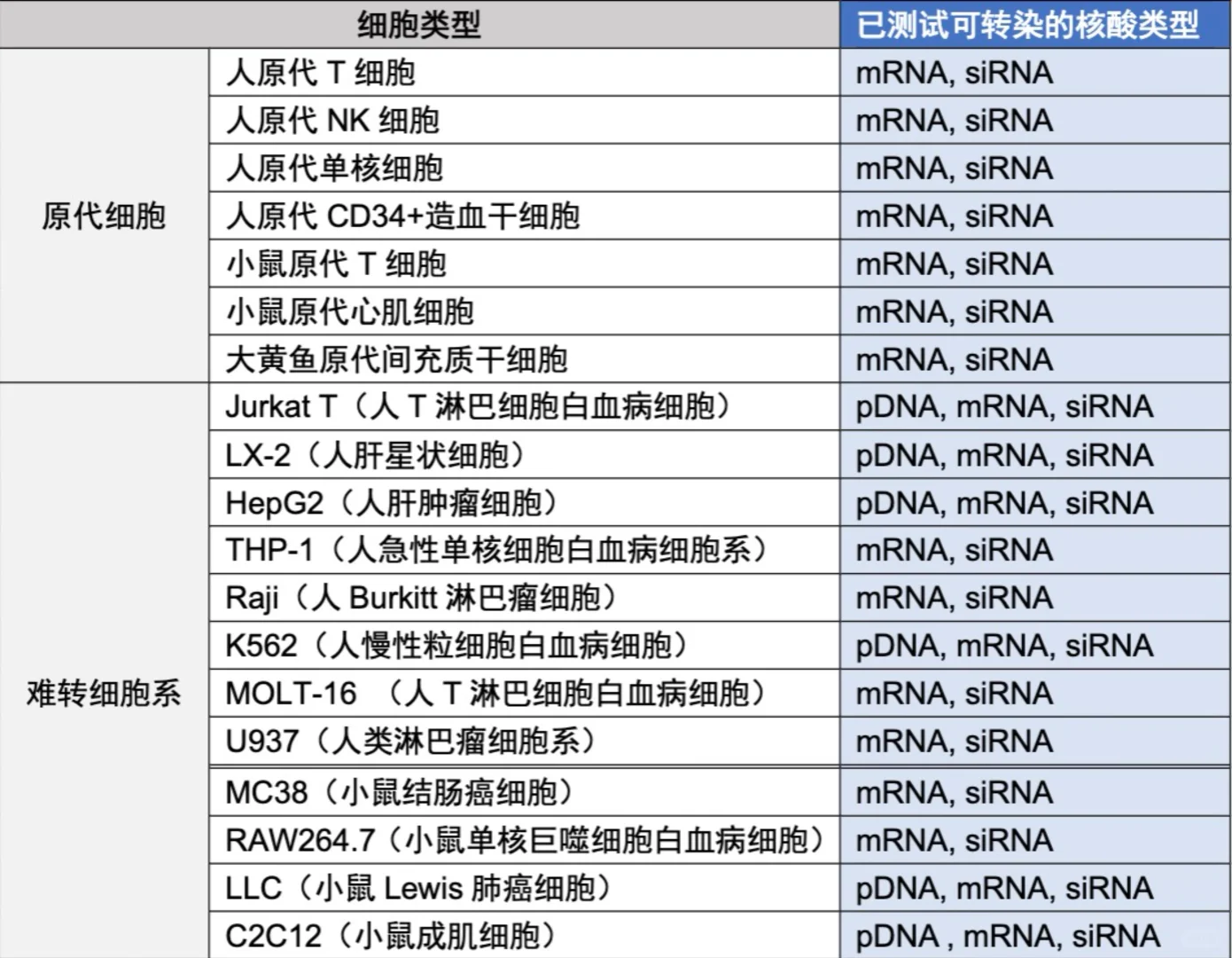 需要转染人或者鼠的原代T细胞的话,可以用[向右R]西湖凝聚体研发的蛋白递送的转染试剂ProteanFect,转mRNA来过表达,转siRNA来敲除.因为是基于内源蛋白纳米颗粒转染的所以刺激性小,细胞活率高。