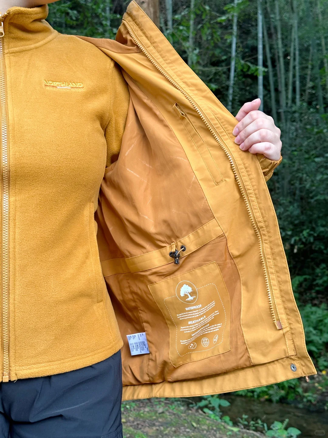 我这次穿了诺诗兰胡杨林冲锋衣🧥,外壳是经典的棕黄配色,跟秋天完美适配🧡,拍照超出片!