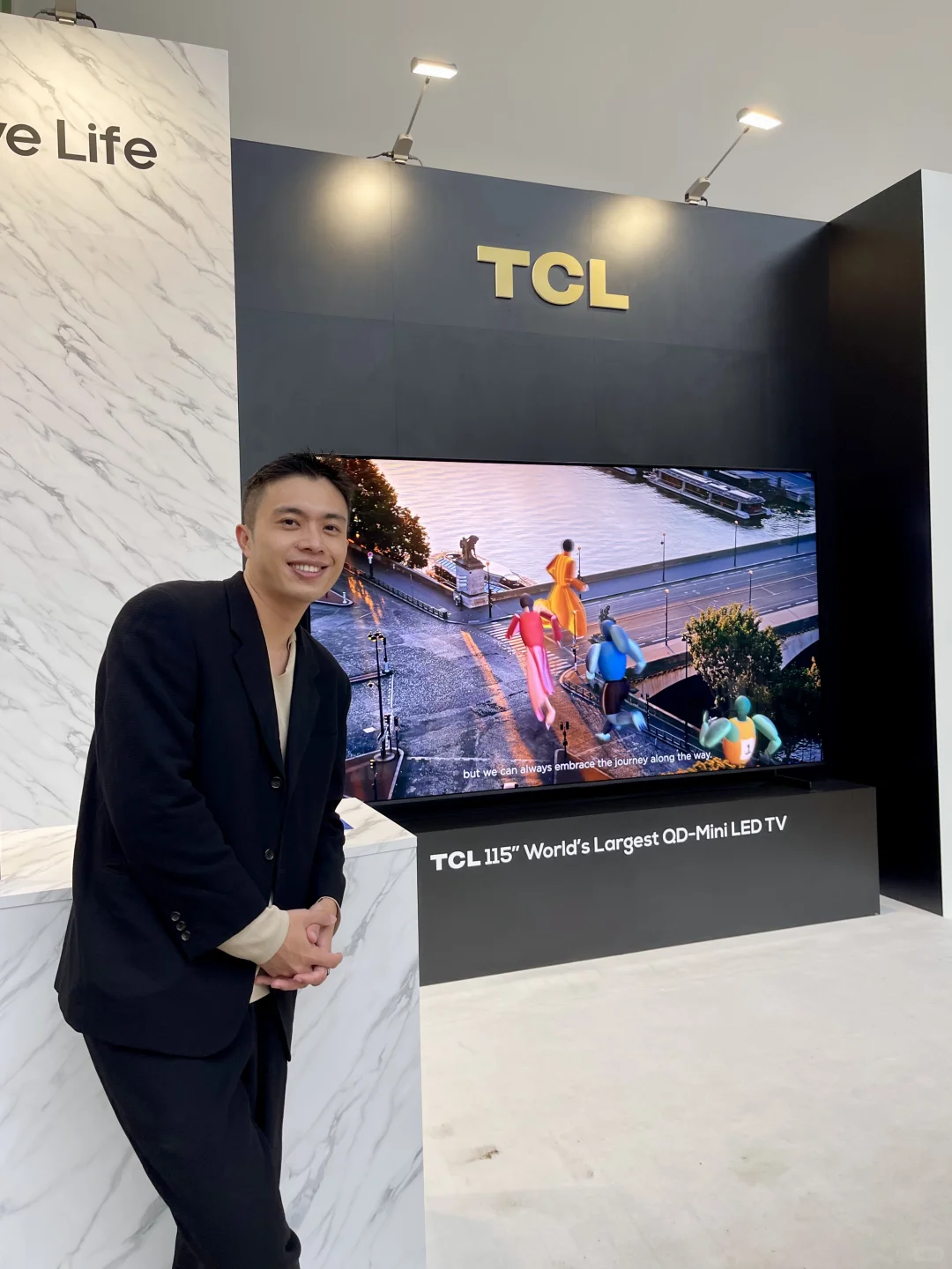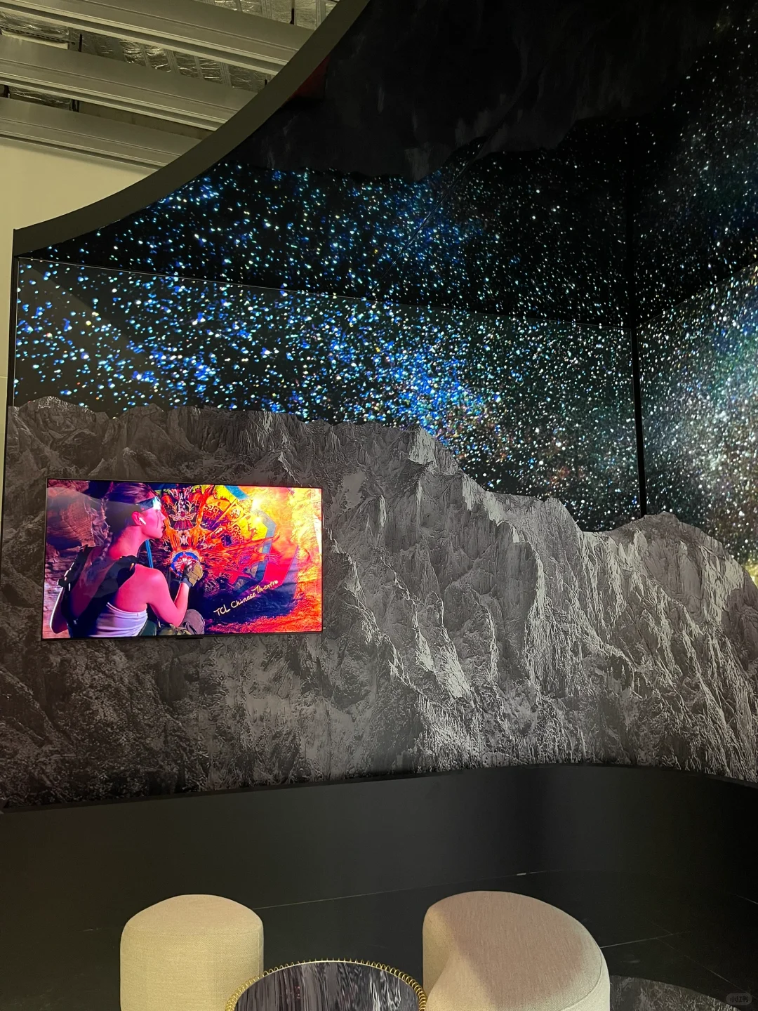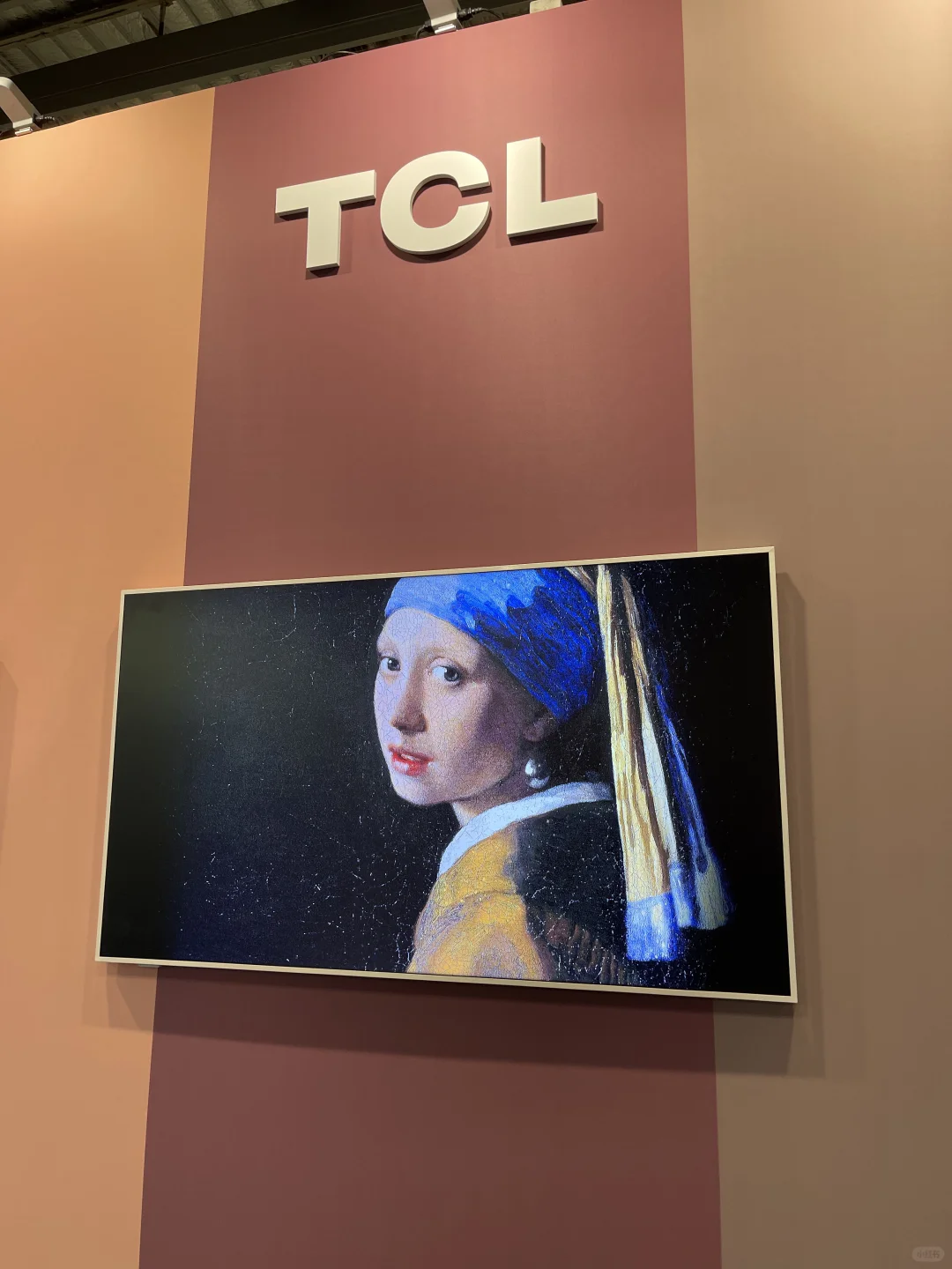 二楼是Emergence sector,有很多代表年轻创新力量的展品。👍🏻在这里我看到了TCLArt艺术馆,最先看到的是挂在墙上的“画作”,这个是由TCL A300 Pro第三代艺术电视搭配TCL 华星AG POL 画布艺术屏模仿油画质地展现的,它的平板薄画框设计完全可以在家里以假乱真当艺术品的程度。📺 旁边是115吋的巨幕电视,其华星 HVA蝶翼星曜屏拥有超高色域和穿透率现场感受非常高清震撼。