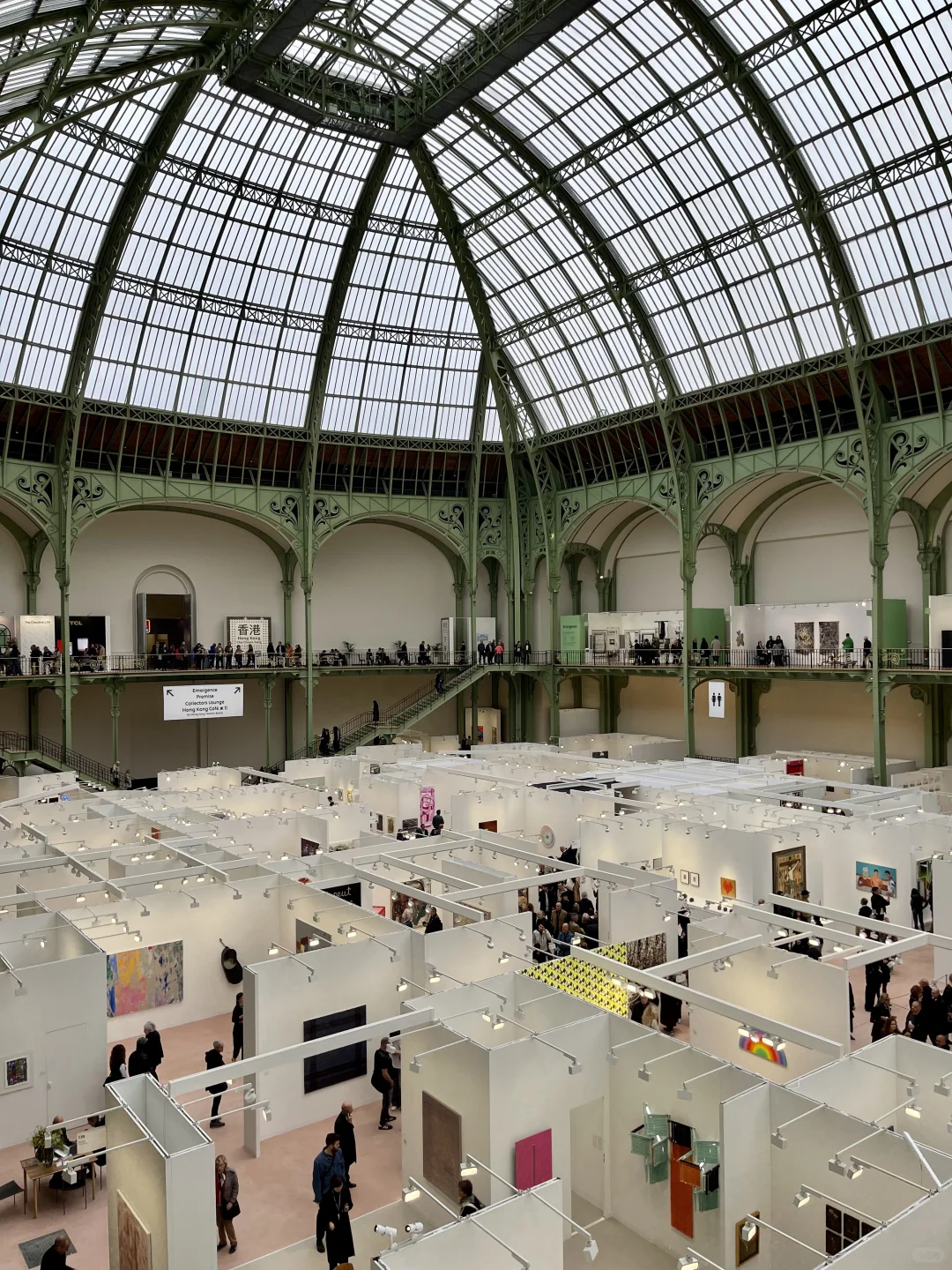 🖼️今年Art Basel Paris选在了巴黎Grand Palais大皇宫!(就是巴黎奥运会举办击剑的绝美场馆) 高耸的圆形穹顶让整个场地空间感十足,各个展台的明黄灯光和绿色的穹顶交相呼应,既明亮又暧昧。