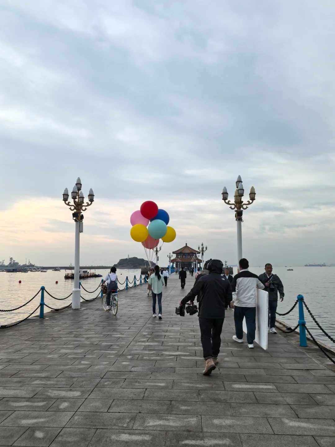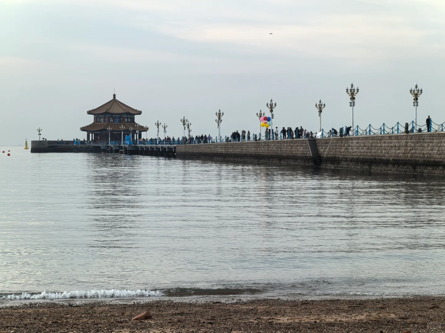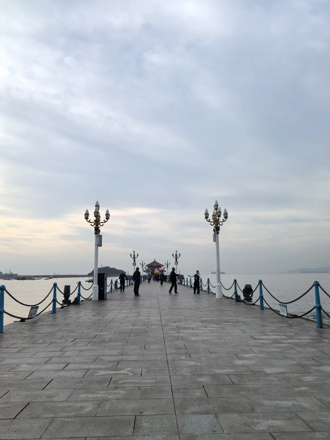 将近八点未见海鸥来栈桥觅食。多云天,不冷。风衣卫衣冲锋衣可。