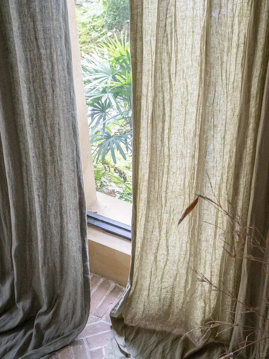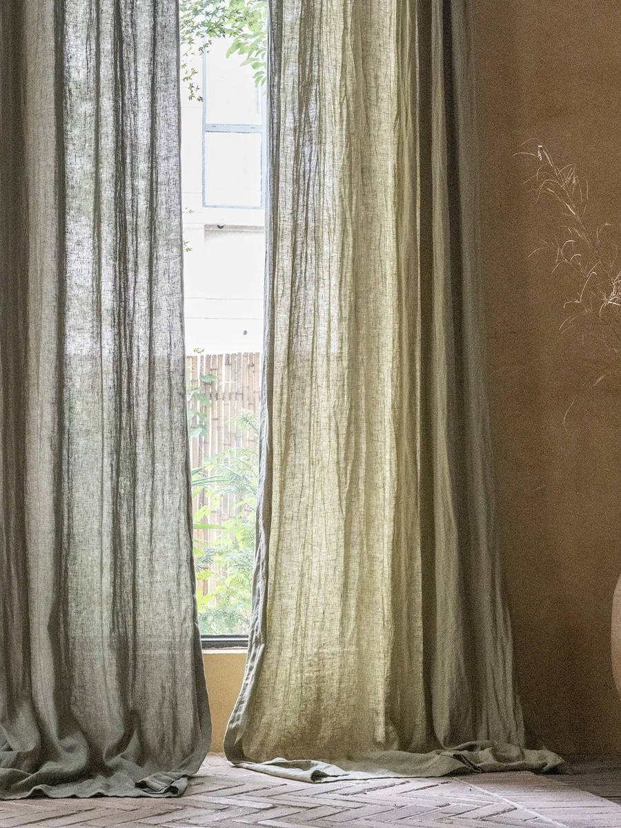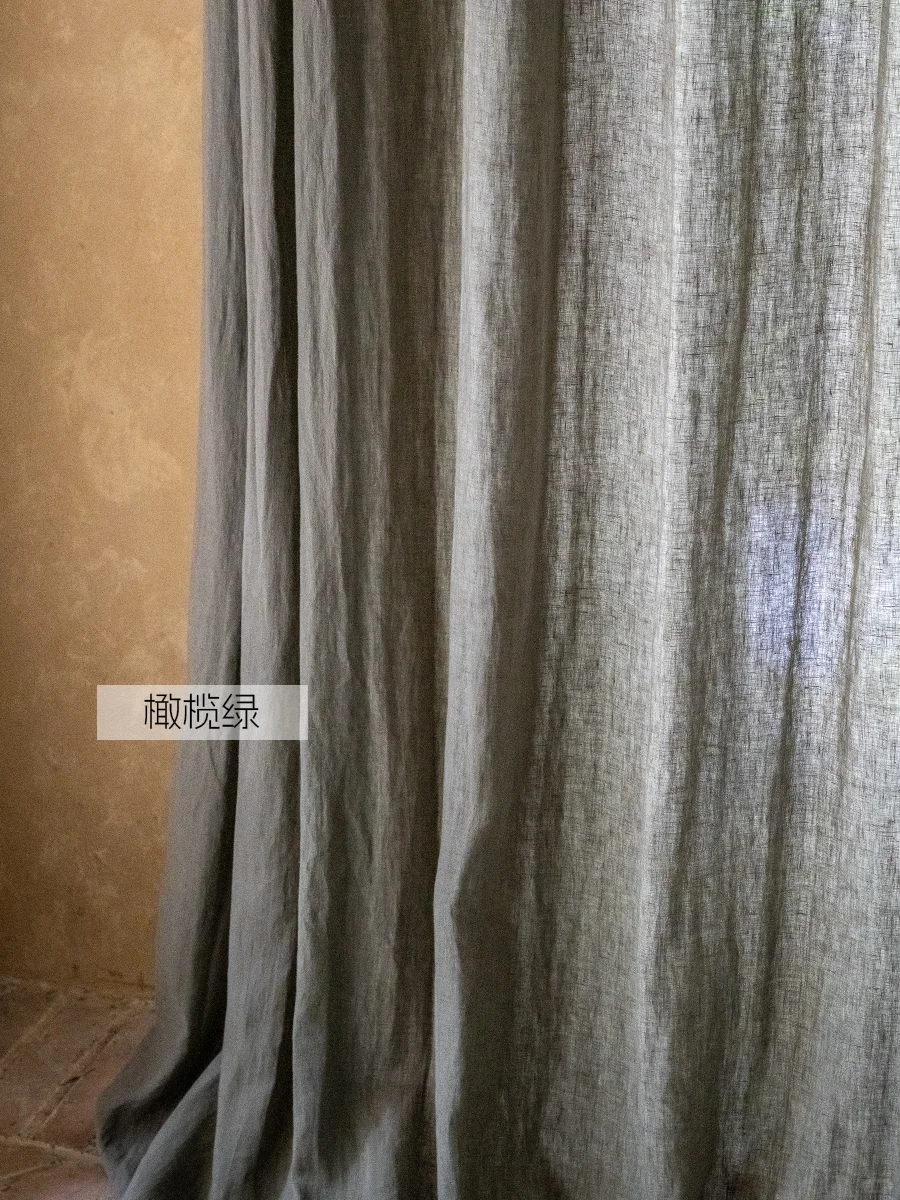 纯亚麻窗帘 绿色窗帘 本原亚麻布艺