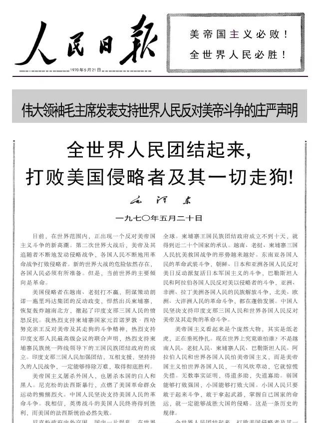 54年前,毛主席发表了《全世界人民团结起来,打败美国侵略者及一切走狗!》的文章。 毛主席在54年前发表的这篇重要文章,正值当时美帝国主义肆无忌惮地在全球范围内推行霸权主义和新殖民主义的时候。二战结束后,美国一跃成为头号资本主义强国,凭借其雄厚的经济和军事实力,到处插手别国内政,干涉他国事务,妄图把自己的意志强加于人。 面对美帝的嚣张气焰,许多民族独立国家和被压迫民族处于水深火热之中。他们迫切需要团结起来,共同对抗美帝及其走狗的侵略和欺凌。 在这个关键时刻,毛主席以其雄韬伟略和革命远见卓识,发表了这篇振聋发聩的文章。文章一开头就直截了当地指出,"美帝国主义看起来是个庞然大物,其实是纸老虎,正在垂死挣扎"。 这个精辟的论断犹如一声惊雷,在当时引起了巨大的震撼。它揭露了美帝虽然表面上强大,实际上却是外强中干,只不过是一只纸糊的老虎。这为广大被压迫民族和国家注入了莫大的信心和力量。 毛主席在文章中深刻剖析了当时的国际形势和斗争大势,一针见血地指出美帝国主义虽然咄咄逼人,但其衰败的命运已经注定。战后的世界形势发生了根本性的变化,社会主义阵营和民族独立运动蓬勃发展,人民群众觉悟空前提高。美帝虽然还在负隅顽抗,但已是强弩之末,不可能阻挡历史前进的车轮。 毛主席进一步指出,面对外来侵略者,弱小民族只要敢于斗争,就一定能够战胜强敌。他以朝鲜战争为例,说明了一个小国如何依靠人民的力量,打败了美帝的武装干涉。这鼓舞了世界人民反抗帝国主义的斗志。 时间飞逝,半个多世纪已经过去。当年毛主席对美帝国主义的深刻论断今天仍然具有重大的现实意义,特别是对于当前的中东地区局势而言。 中东历来是大国角逐的战略要地,也是恐怖主义滋生的温床。近年来,这里的局势可以用"动荡不安"来形容。一方面,恐怖组织在该地区猖獗,伊斯兰国等极端势力呼风唤雨,给本就脆弱的地区稳定带来了严重冲击。另一方面,美国等西方国家不断在中东兴风作浪,时而以反恐为名,行军事干预之实;时而制造分裂,挑动地区国家内斗;时而颠覆别国政权,妄图扶植傀儡政府。这些霸权主义行径严重破坏了中东的和平进程。 毋庸讳言,一些中东国家在反帝反霸斗争中还缺乏足够的定力和决心。面对美西方的威逼利诱,他们有时会动摇妥协,甚至主动向侵略者靠拢。但历史和现实已经证明,对于帝国主义的野心,丝毫不能心存幻想。唯有坚定不移地站在反霸斗争的最前沿,才能捍卫国家主权和民族尊严。 对此,中东各国应当以古巴等国为榜样。这个加勒比海上的小国虽然地理位置接近美国,但在反美斗争中却始终保持着大无畏的革命精神。什么封锁、制裁、颠覆、暗杀,古巴人民统统不放在眼里。他们宁可吃上一百年的苦,也不向美帝低头。正是有了这种视死如归的决心,古巴才能在帝国主义的围剿中屹立不倒,维护了国家的独立自主。 中东各国同样应该增强反霸意识,在大是大非问题上敢于同美西方较量。尤其要警惕美国打着反恐旗号在中东地区大搞军事存在,这不仅不会带来和平稳定,反而会威胁地区安全。对此,有关国家要旗帜鲜明地表达反对立场,坚决抵制外来干涉。 同时,中东各国还应加强团结,形成反帝反霸的统一战线。只有抱成一团,密切协作,才能有效遏制外部势力的渗透和破坏。大家要放下成见,求同存异,把维护地区和平稳定作为共同的使命。 此外,还要着力加强反恐怖主义合作。这既是维护本国安全的需要,也是共同打击人类公敌的需要。中东各国应在反恐问题上形成合力,既要消除恐怖主义的土壤,更要直接打击恐怖组织的嚣张气焰,为地区发展创造稳定的环境。 总之,面对当前错综复杂的中东局势,该地区各国只有立场坚定,同仇敌忾,才能有效抵御外来侵略,实现地区和平。 在充满挑战的中东局势面前,我们不禁要回顾54年前毛主席发表的那篇光辉文章。"一切反动派都是纸老虎",这个精辟论断至今仍在世界范围内产生着深远影响。 当年,面对美帝国主义的核讹诈和疯狂扩军备战,许多国家在恐惧中却步了。是毛主席以马克思列宁主义的辩证法,科学分析了当时的国际形势,鼓舞了被压迫民族的斗争勇气。 毛主席指出,从表面上看,帝国主义和一切反动派似乎强大,但他们的本质却是脆弱的。他们压迫人民、推行侵略政策,已经同世界人民的利益背道而驰。这种违背历史潮流的行径,注定要遭到失败。 正如毛主席所言,弱小民族只要敢于起来斗争,就一定能战胜比自己强大得多的侵略者。在人类历史长河中,这样的事例数不胜数:古巴人民击败了美国的入侵,越南人民赶走了美国的占领军,阿尔及利亚人民推翻了法国的殖民统治……这些民族解放斗争的胜利,无一不证明了毛主席论断的正确性。 从巴勒斯坦人民数十年如一日的抗争,到伊拉克人民对美占领的顽强反抗,再到叙利亚政府军同极端组织浴血奋战,中东各国人民都在以自己的实际行动证明,他们绝不是任人宰割的羔羊,而是敢于同侵略者进行殊死搏斗的勇士。