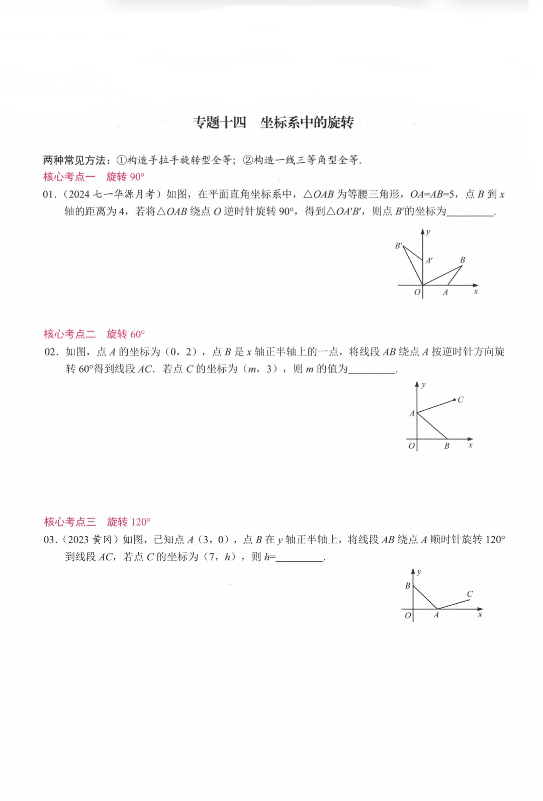 中考数学 初中数学笔记 中考数学几何模型 初中数学知识点 旋转 九年级 初三数学九年级上 初三数学上册 中考数学