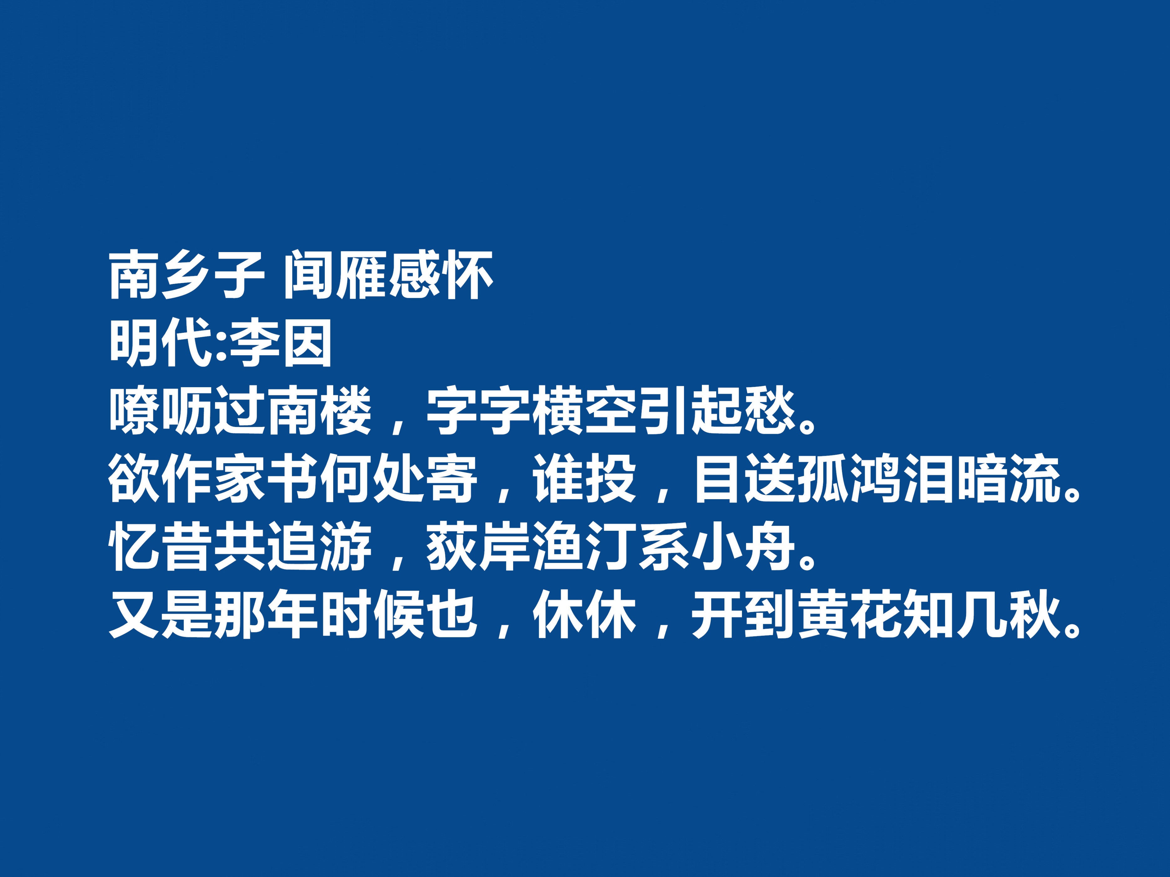 李因以卑微出身书写不凡人生,用诗词为乱世立传,不仅丰富了明末清初的文学宝库,更为女性群体争得了文化话语权。她的作品与人格,至今仍是解读那个时代女性命运与文学精神的重要范本,下面欣赏她的八首诗词。