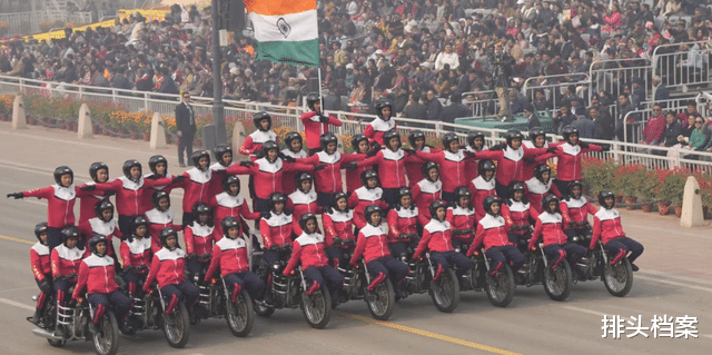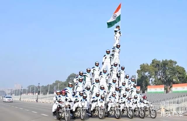 而印度阅兵中也包含了各种杂耍、杂技表演,比如摩托车叠罗汉,摩托车展翅飞等等,更是每年一度必不可少的表演节目。